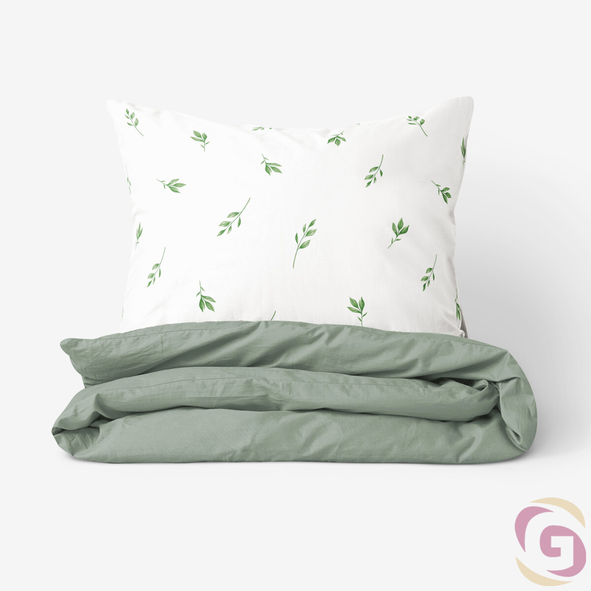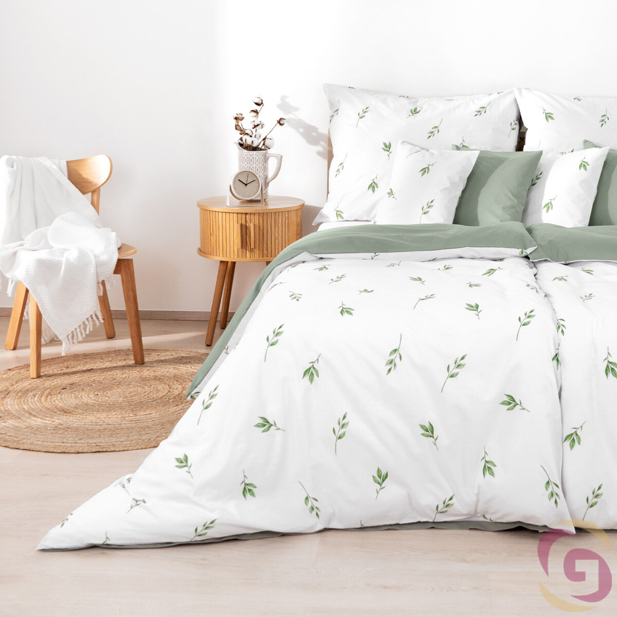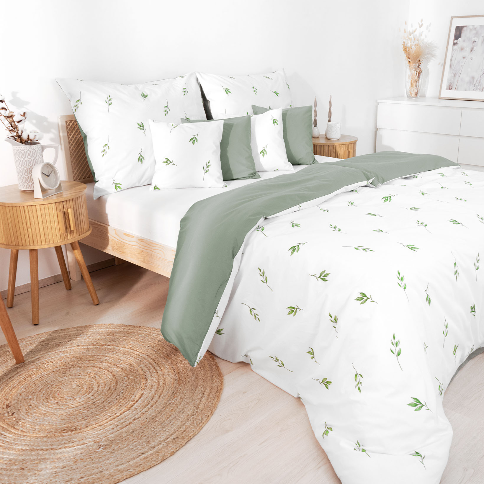 Bettwäsche aus Baumwolle Duo - Olivenblätter mit salbeigrün