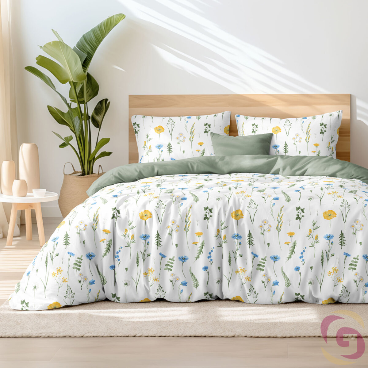 Bettwäsche aus Baumwolle Duo - Sommerwiese mit honiggelb