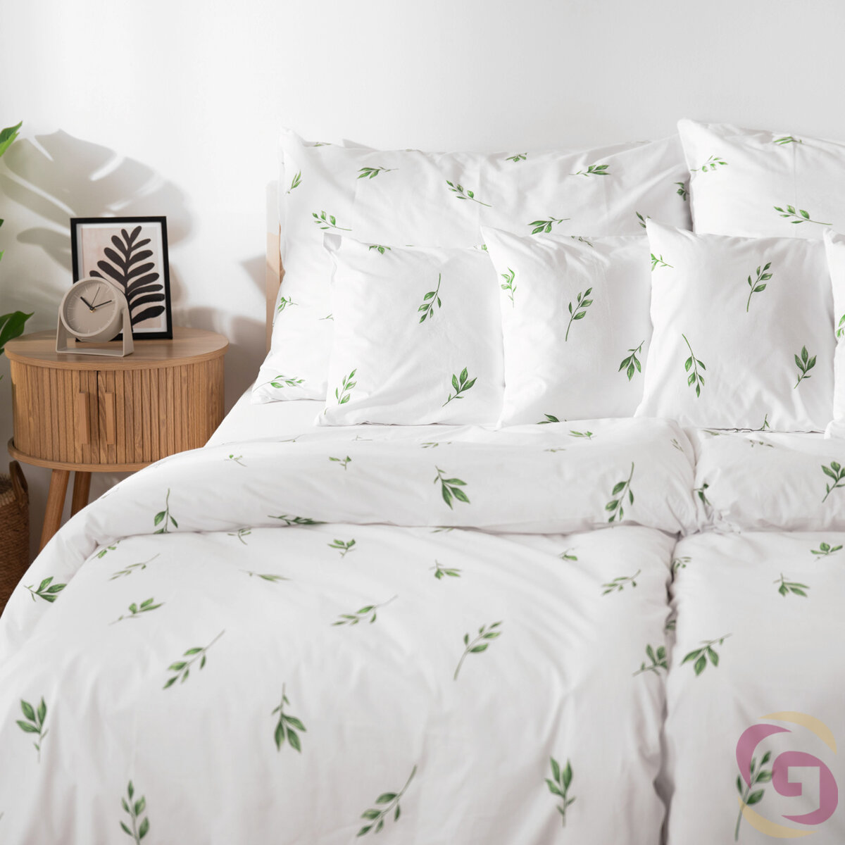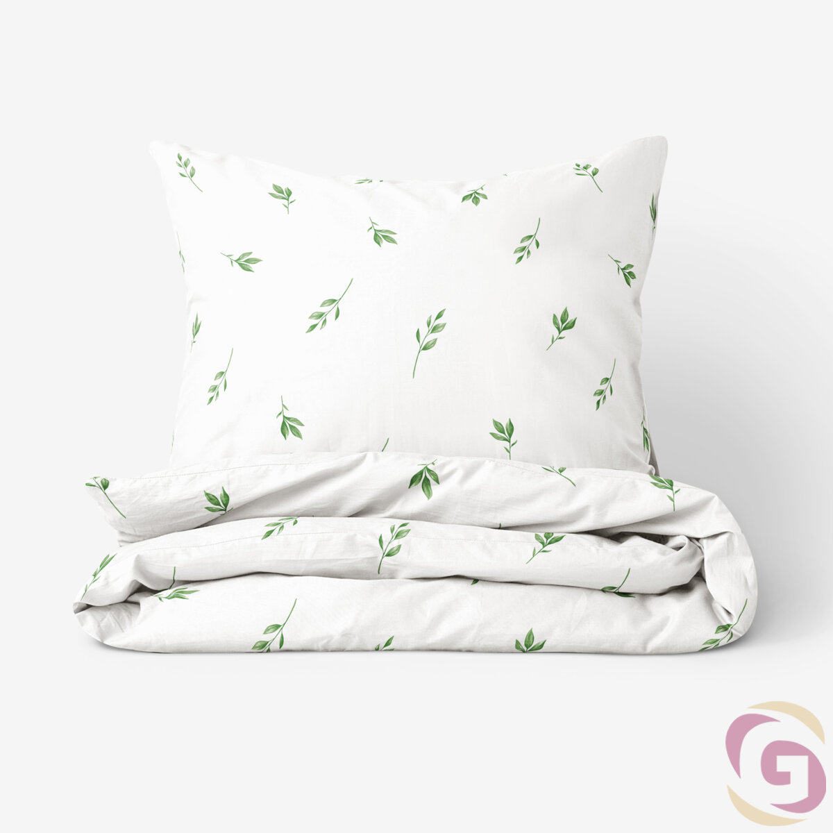 Bettwäsche aus Baumwolle Duo - Olivenblätter mit salbeigrün