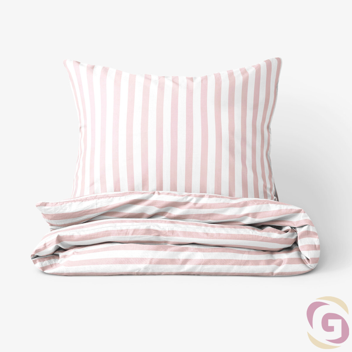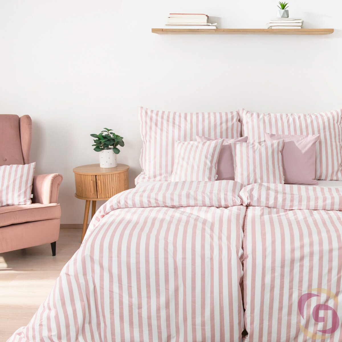 Bettwäsche aus Baumwolle - Puderrosa Streifen