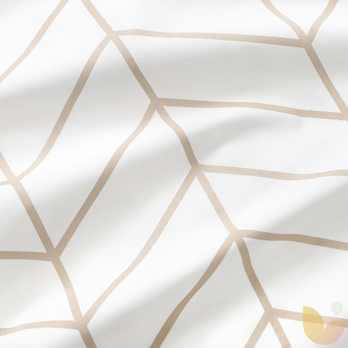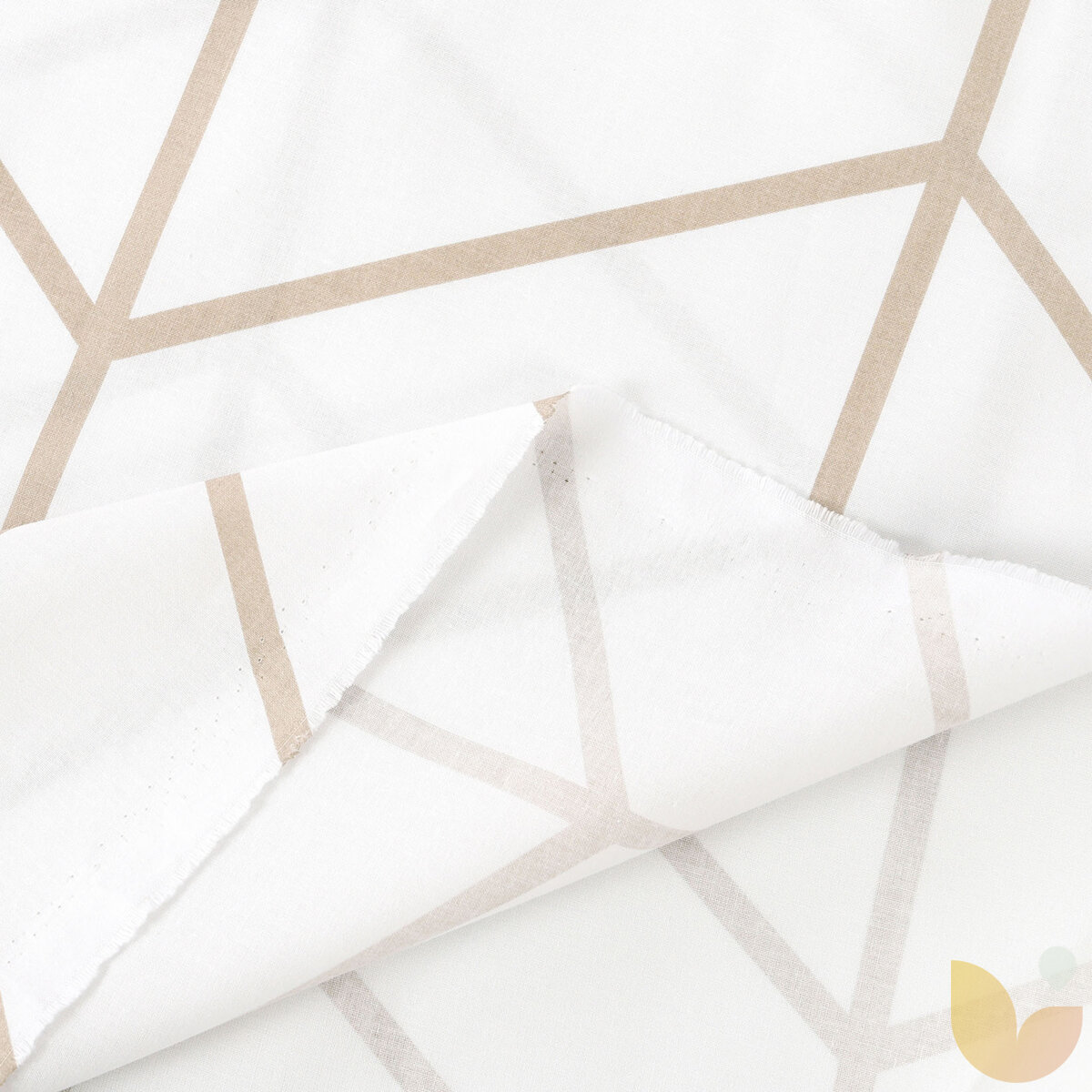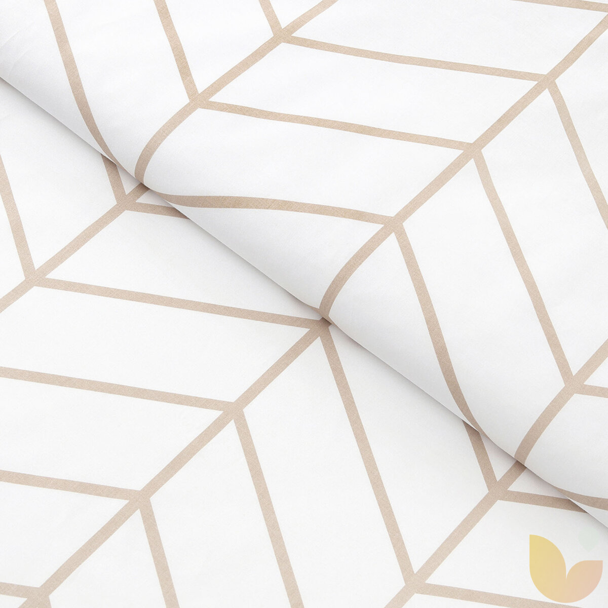 Baumwollstoff - Beiger Zickzack auf Weiß