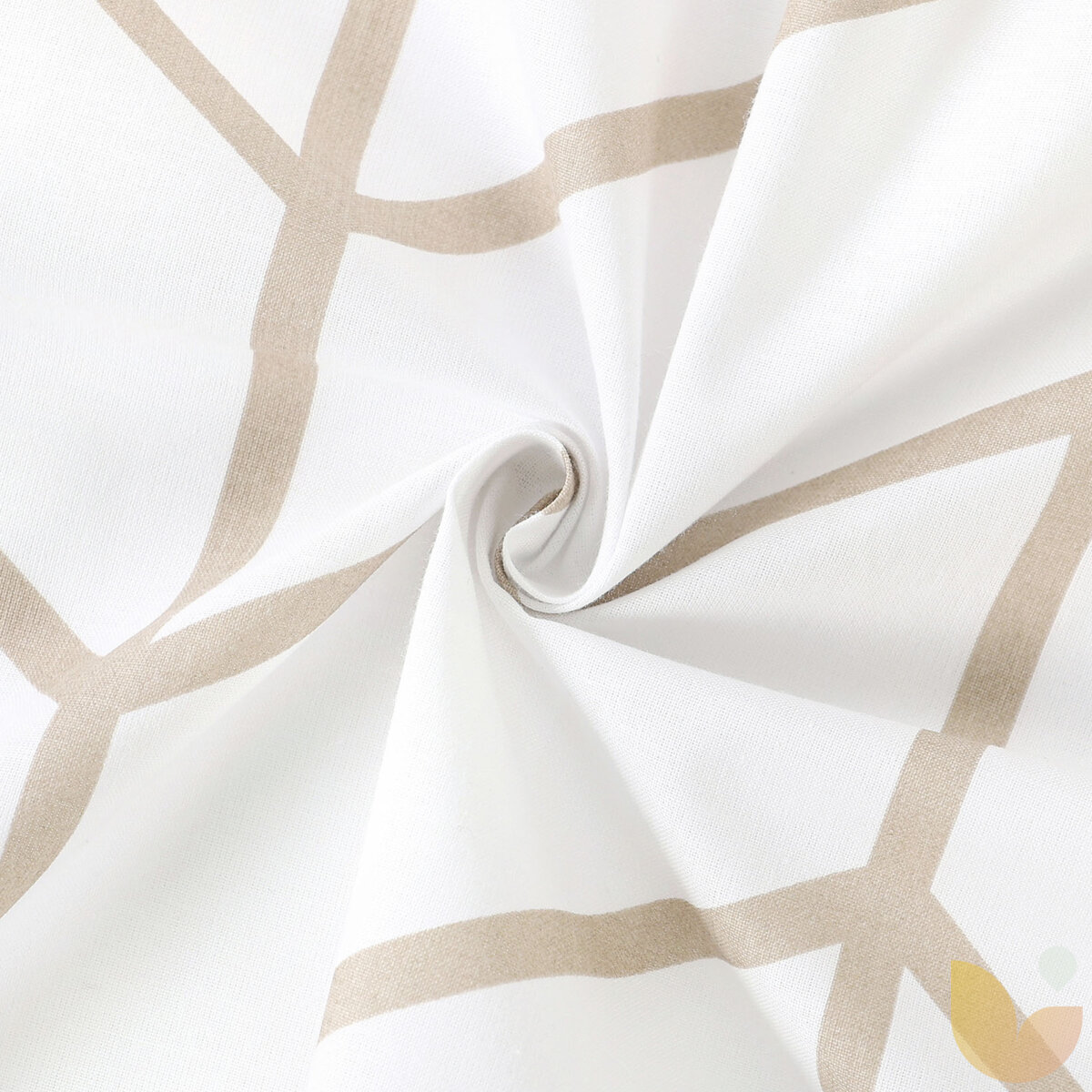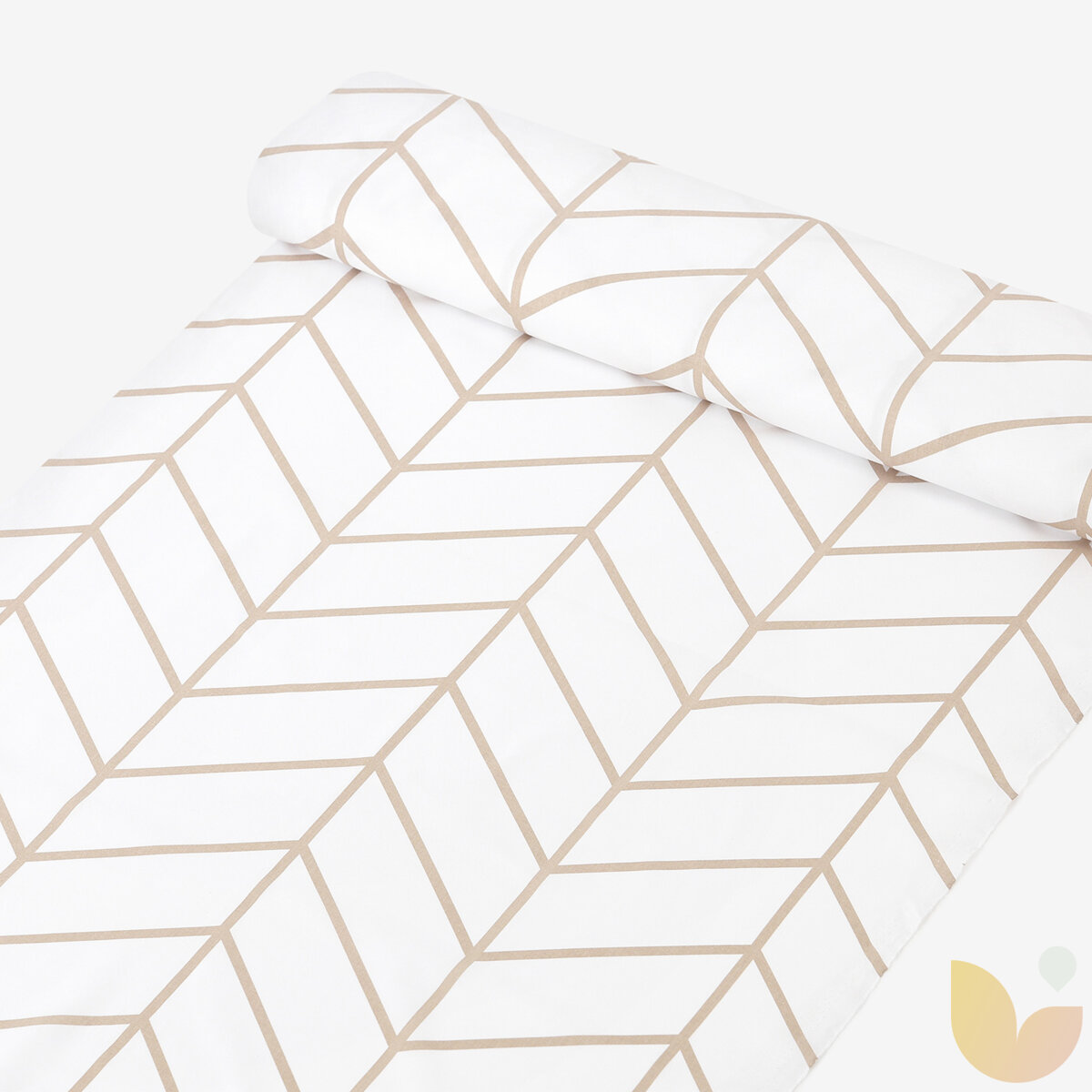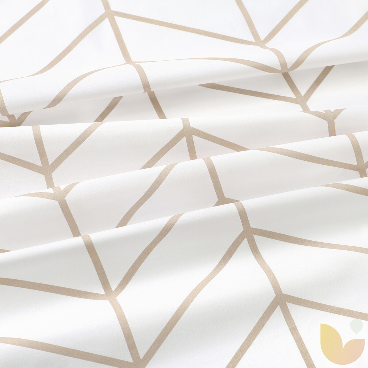 Baumwollstoff - Beiger Zickzack auf Weiß