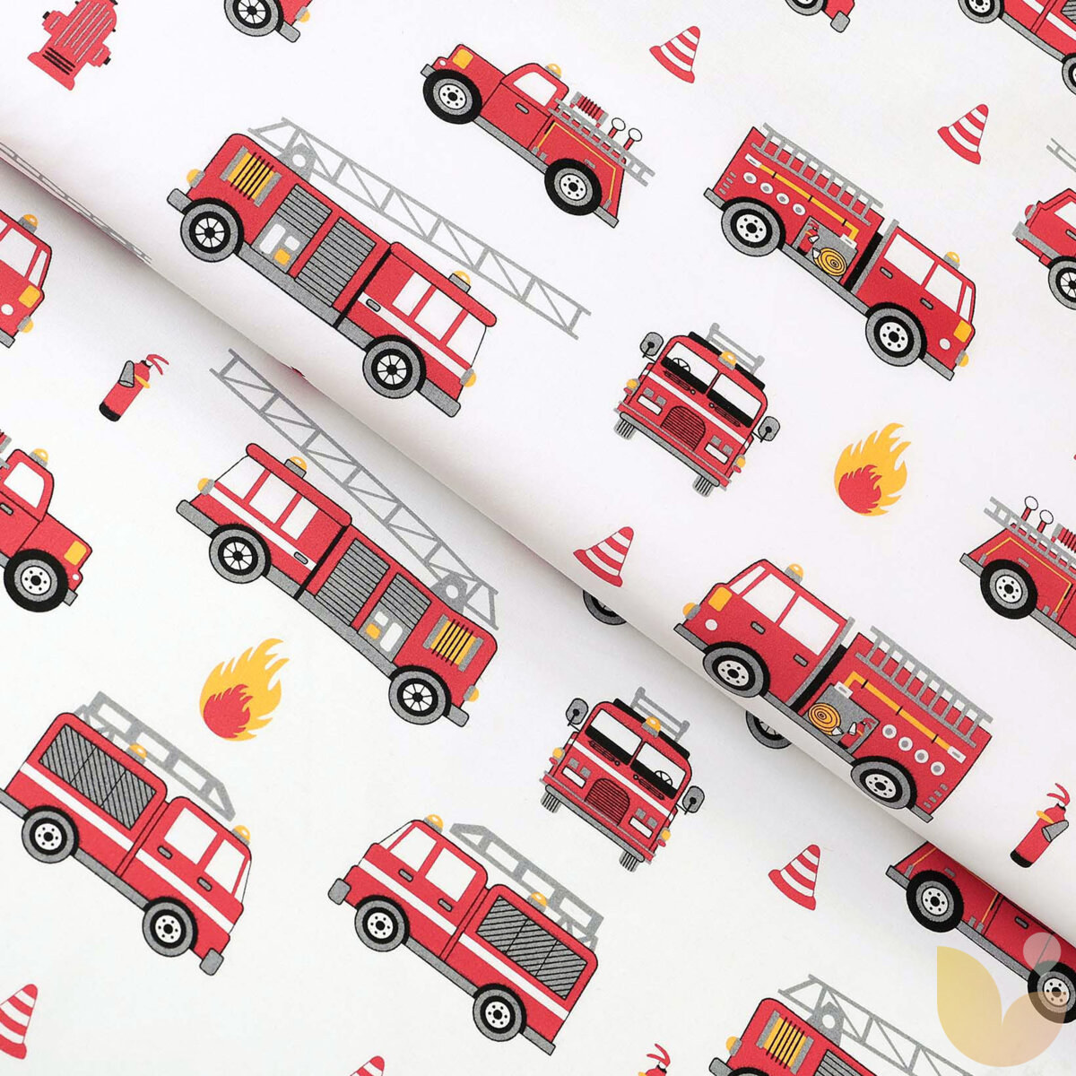 Baumwollstoff mit einem Motiv Feuerwehrfahrzeuge. Die Breite des Stoffes beträgt 160 cm. Die Hintergrundfarbe ist weiß. Der Baumwollstoff besteht aus hochwertiger, glatter 100 % Baumwolle mit einem Gewicht von 145 g/m2 . Der Baumwollstoff wird als Meterware angeboten, die Mindestabnahmemenge beträgt 0,5 m. Wir bieten auch weitere Produkte aus Baumwollstoff mit Feuerwehrfahrzeuge an.