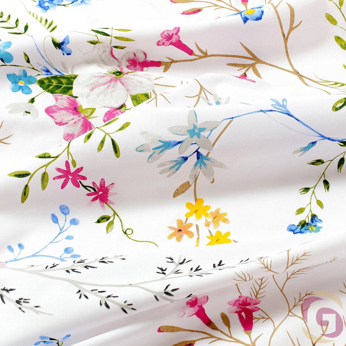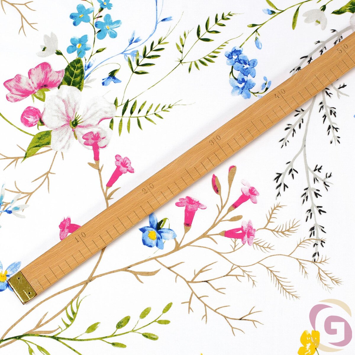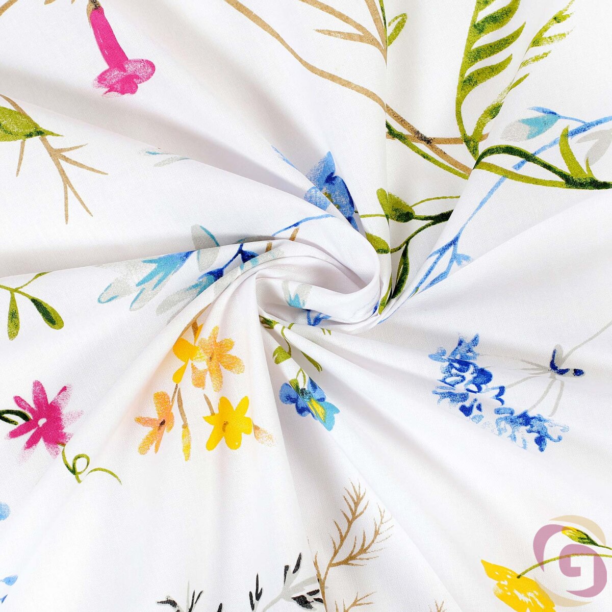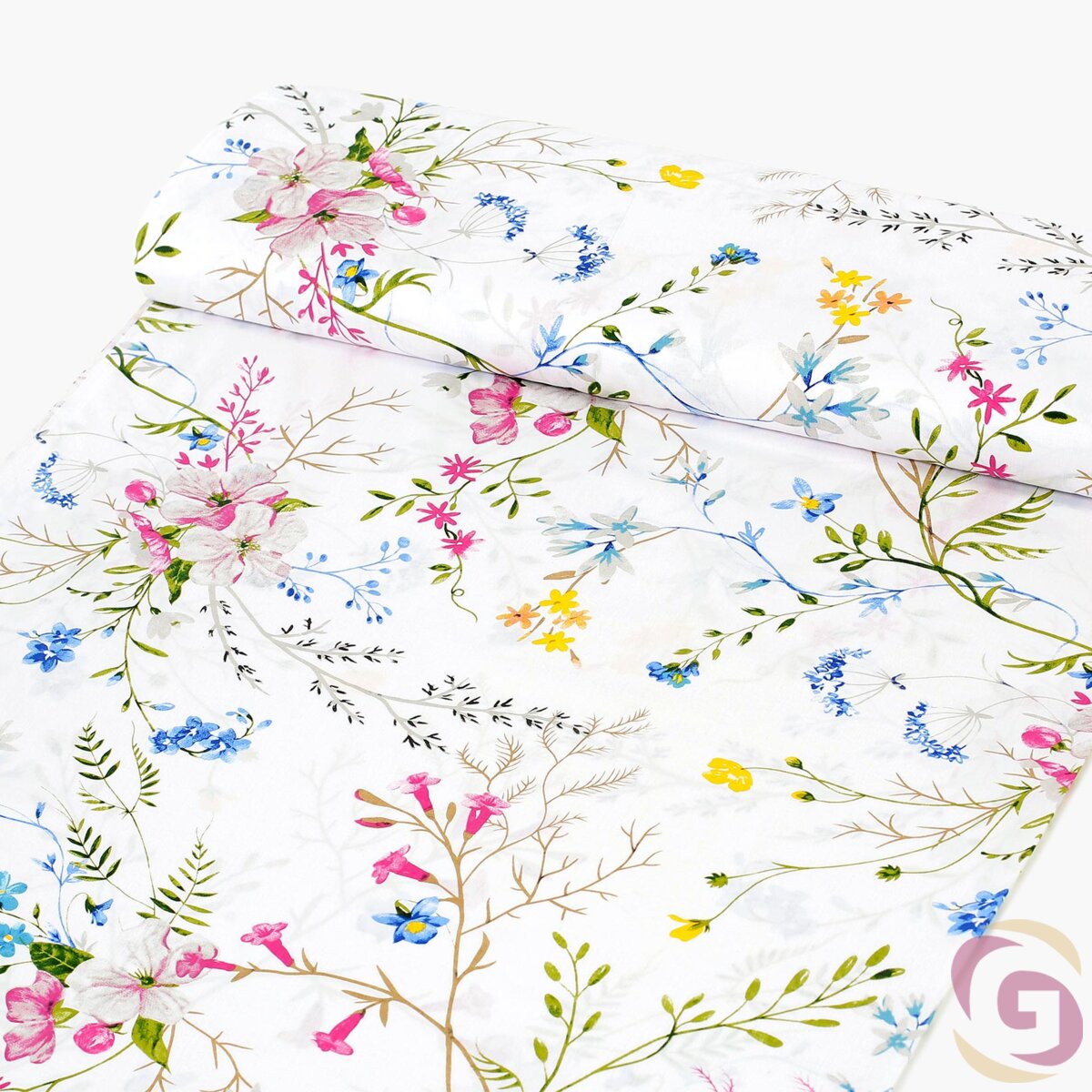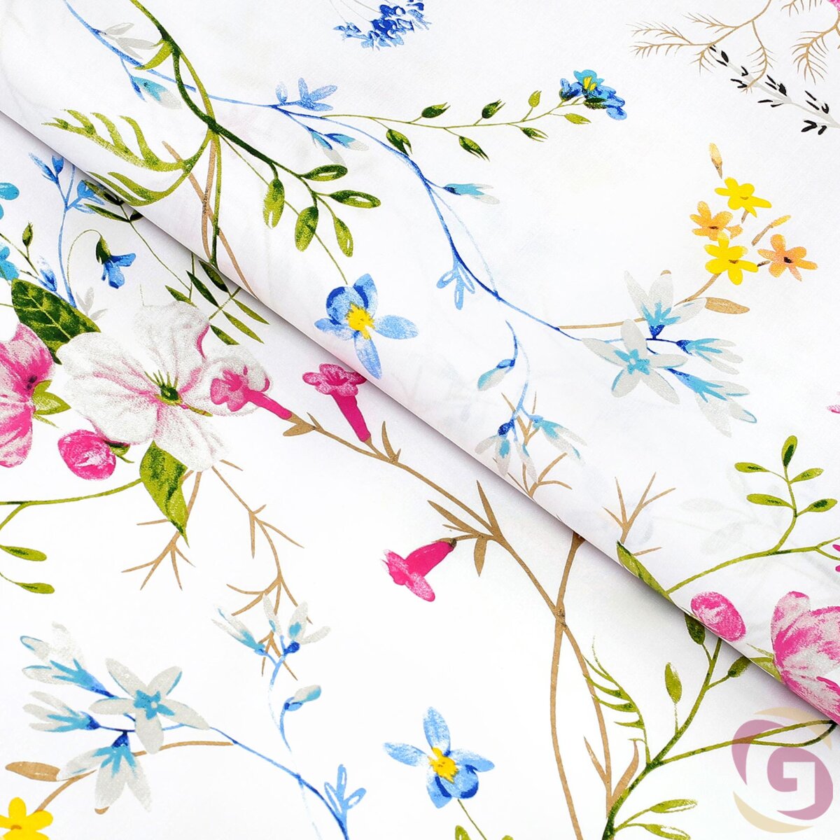 Baumwollstoff - Gemalte Wiesenblumen