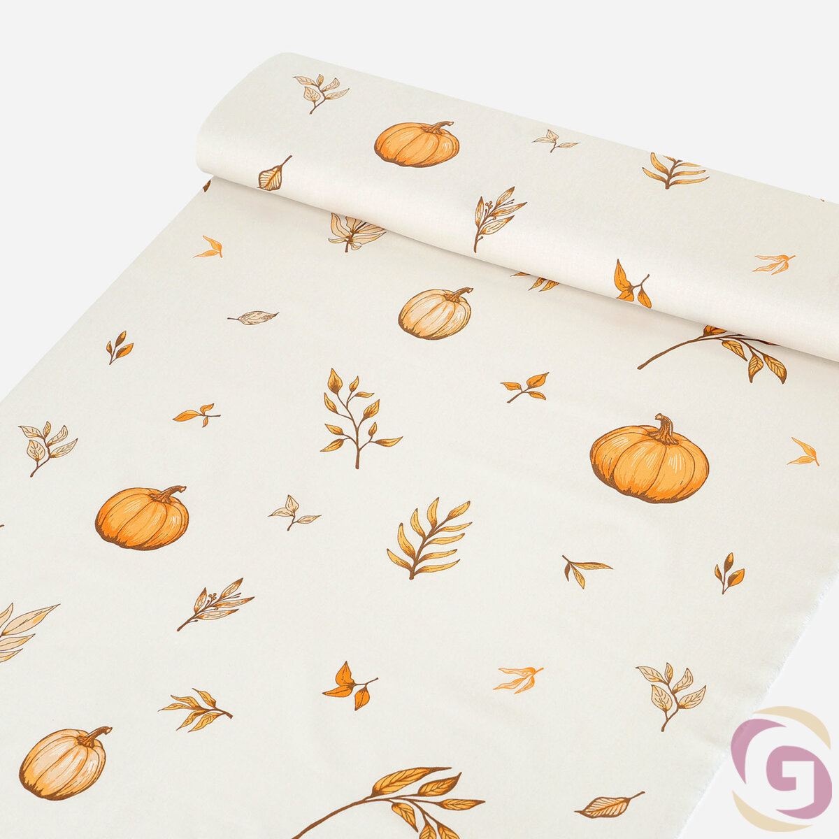Tischläufer aus 100% Baumwolle - Herbstkürbisse und Blätter