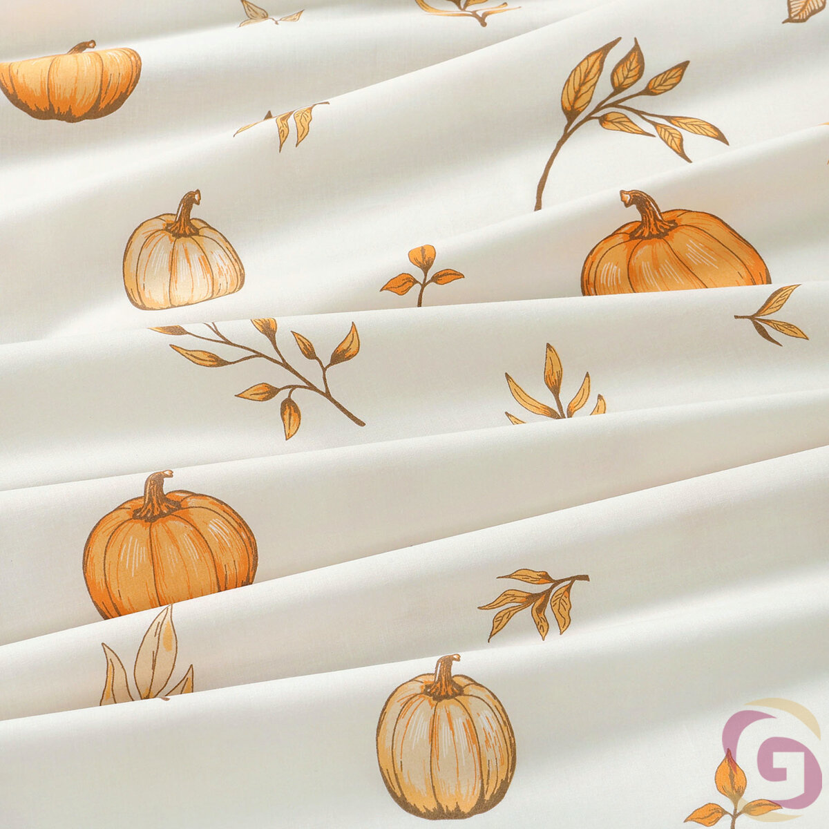Spannbettlaken aus Baumwolle - Herbstkürbisse und Blätter