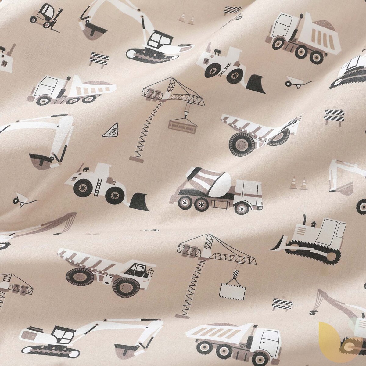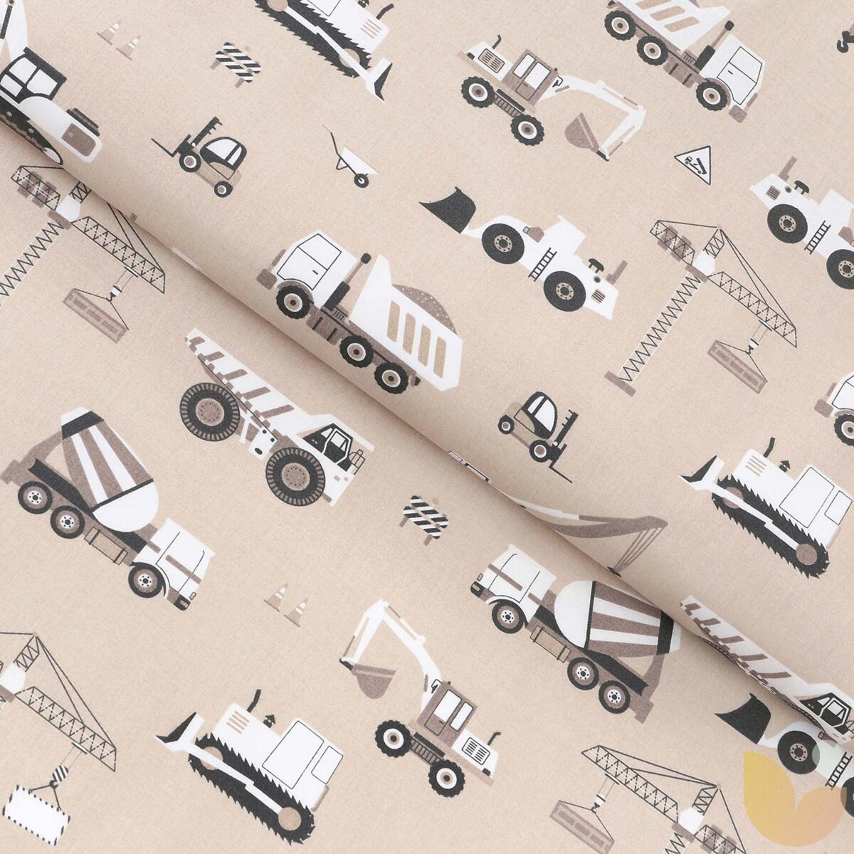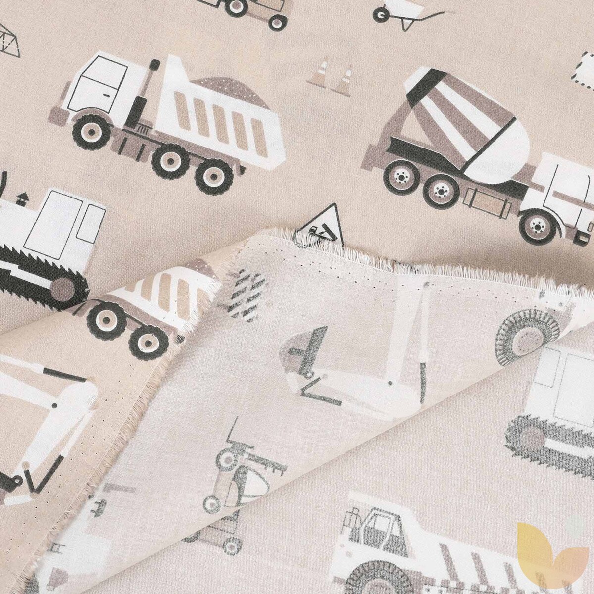 Baumwollstoff - Lastwagen und Bagger auf Beige