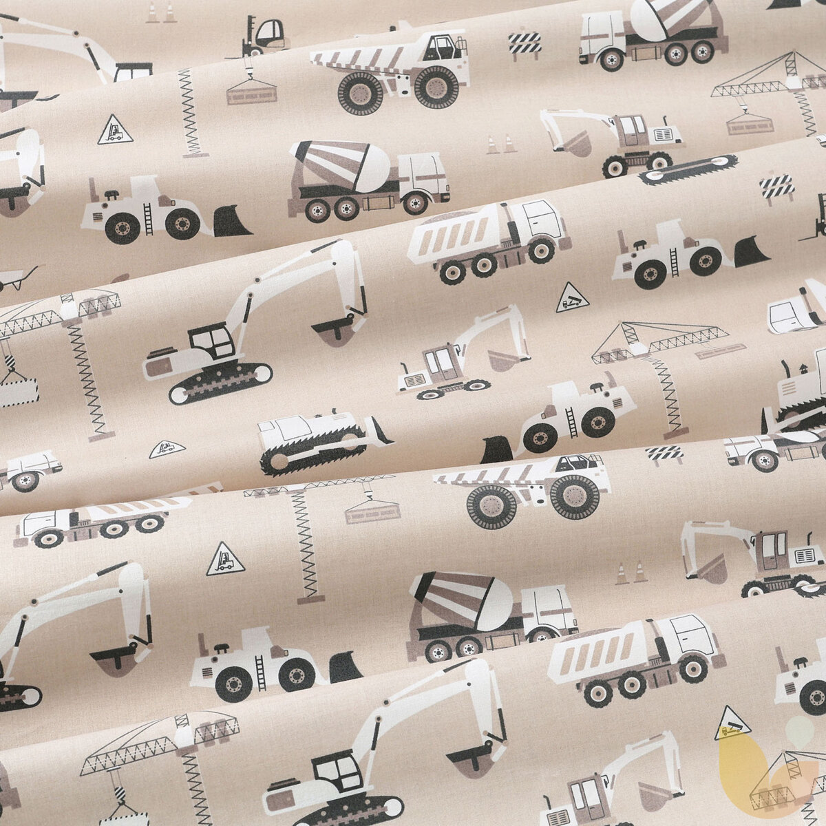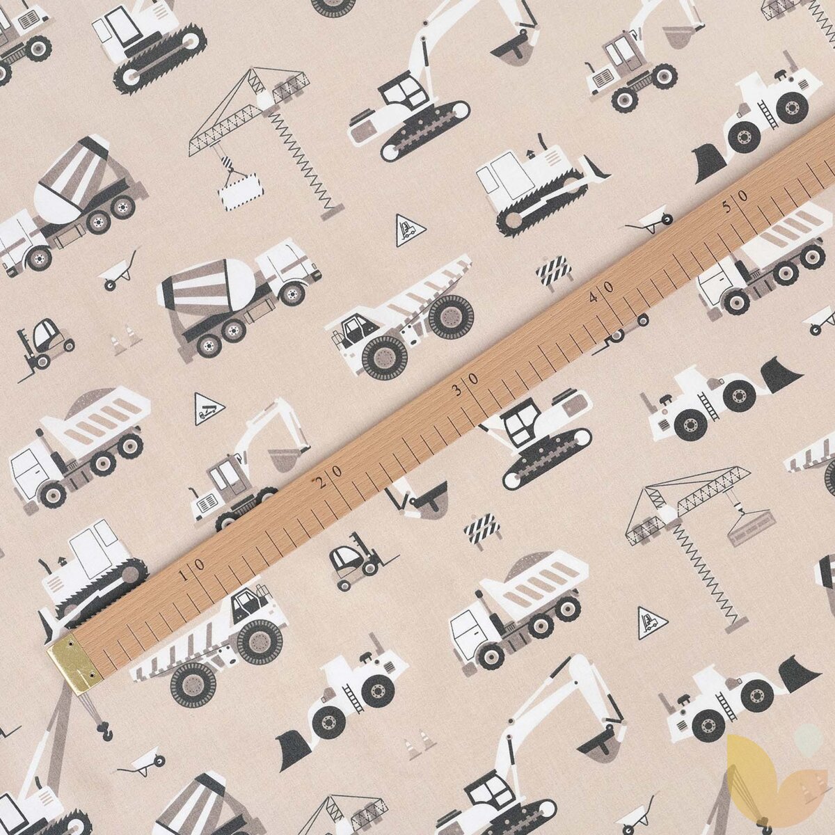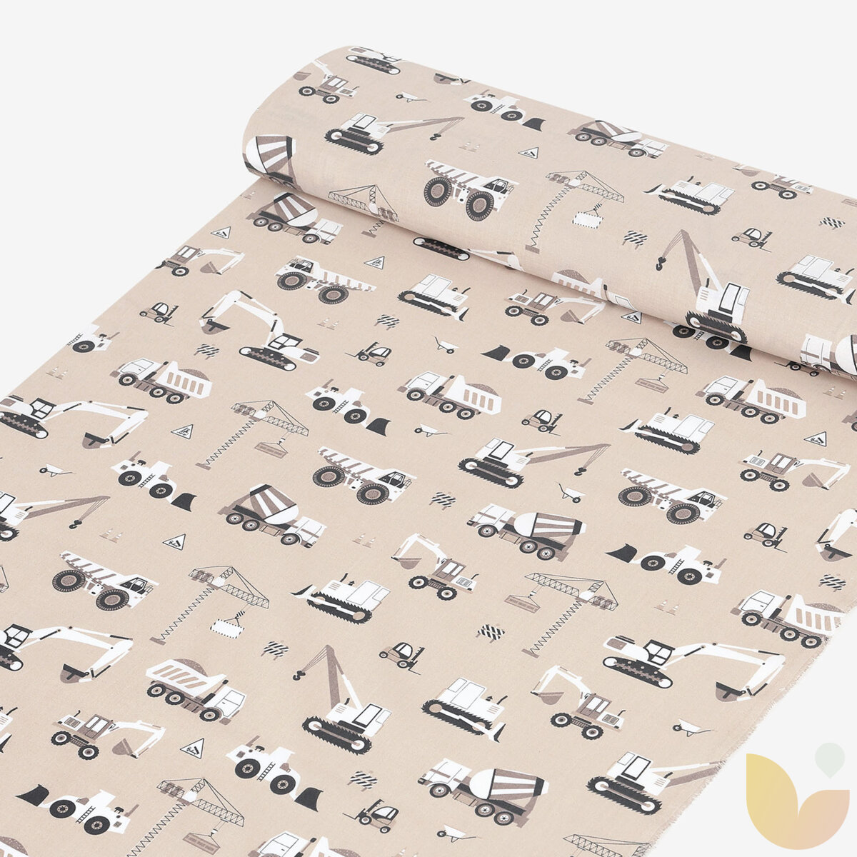 Baumwollstoff - Lastwagen und Bagger auf Beige