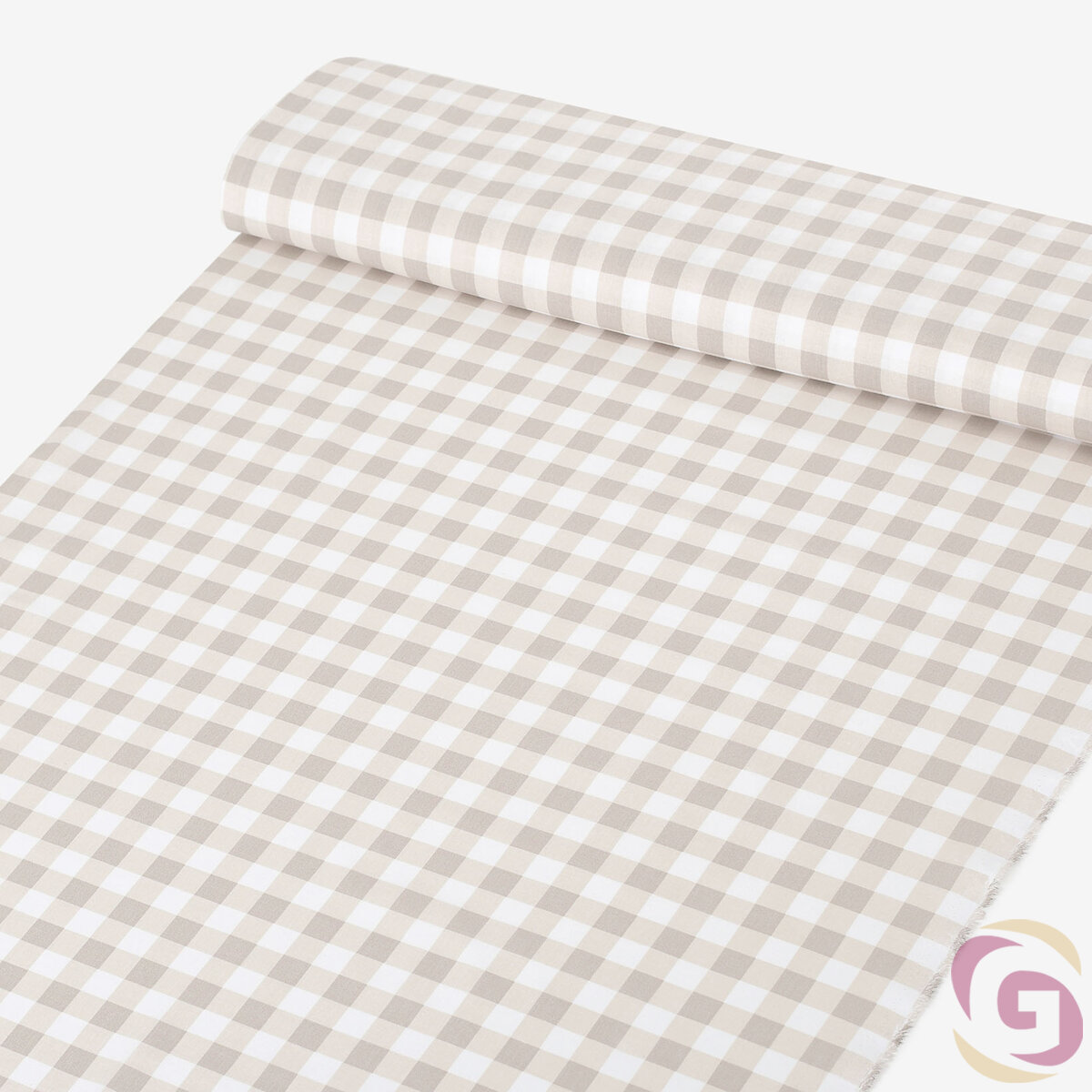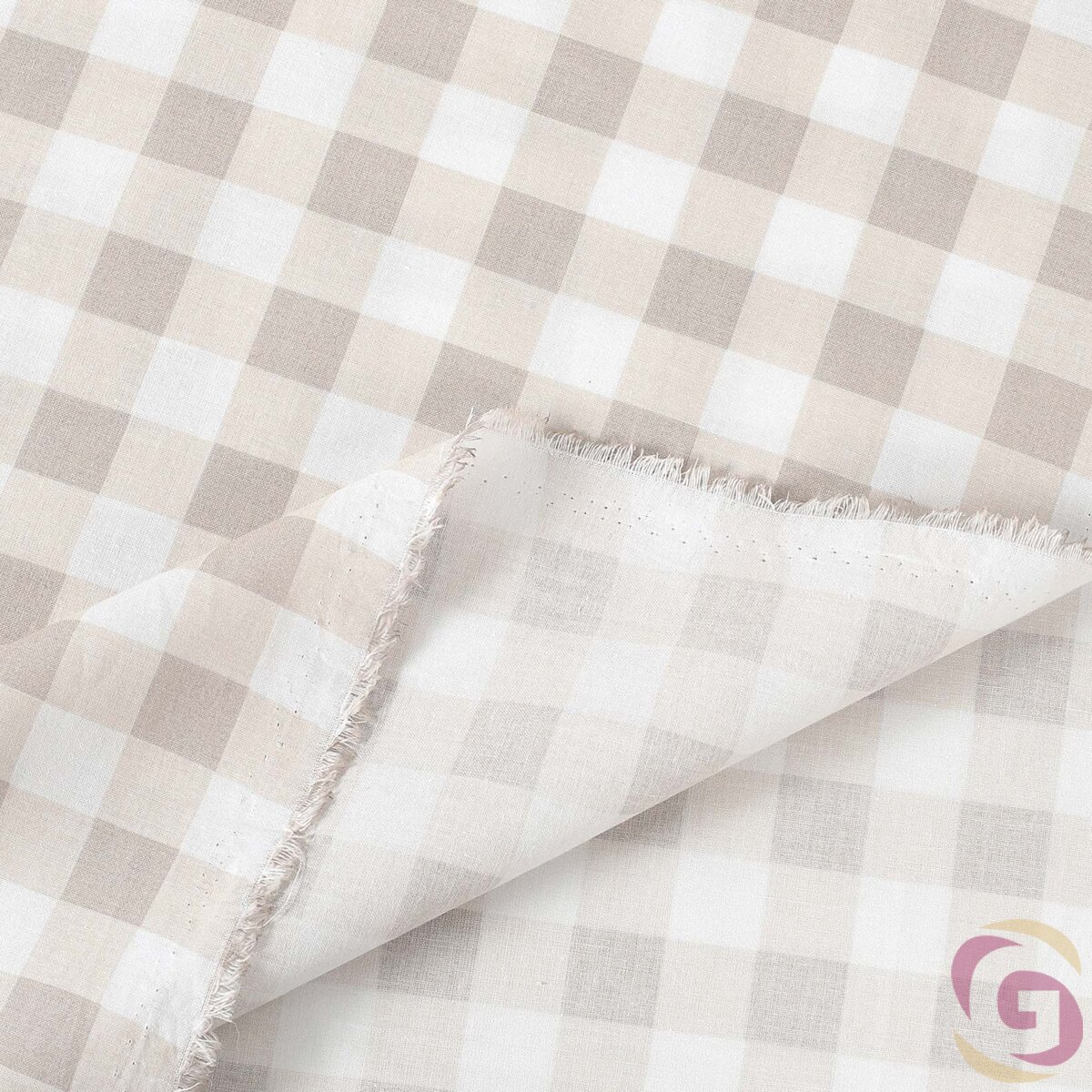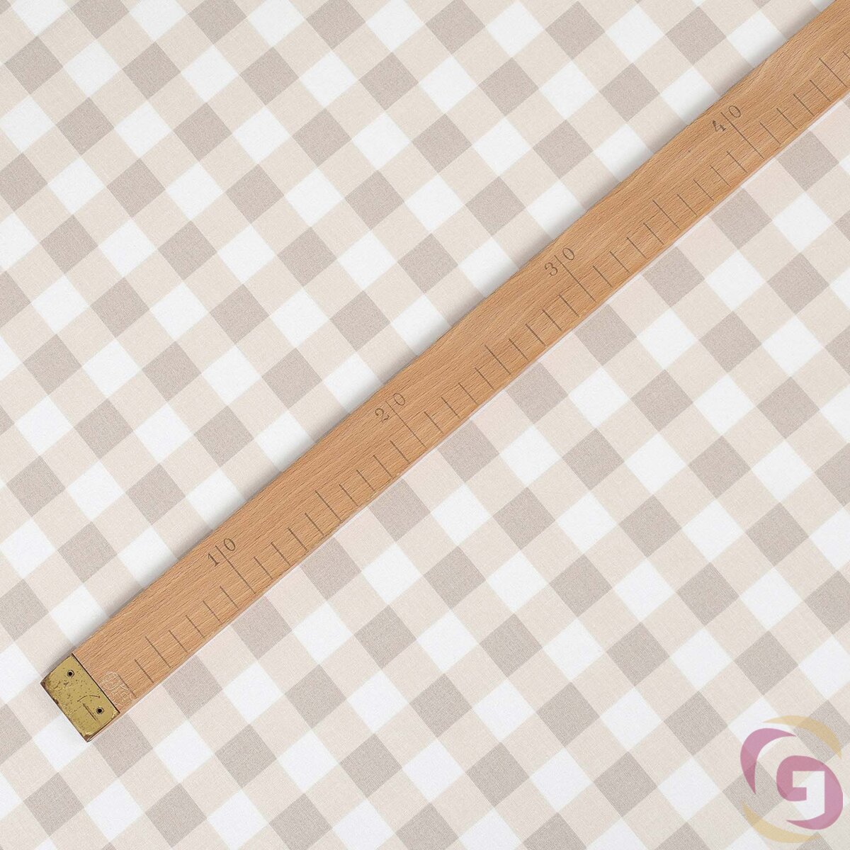Baumwollstoff mit Latte-Würfel. Die Breite des Stoffes beträgt 160 cm und die Hintergrundfarbe ist weiß. Der Stoff ist aus hochwertiger und glatter 100% Baumwolle mit einem Gewicht von 145 g/m2 hergestellt. Der Baumwollstoff wird als Meterware angeboten, die Mindestabnahme beträgt 0,5 m. Wir bieten auch genähte Produkte aus Baumwollstoff mit Latte-Würfel an.
