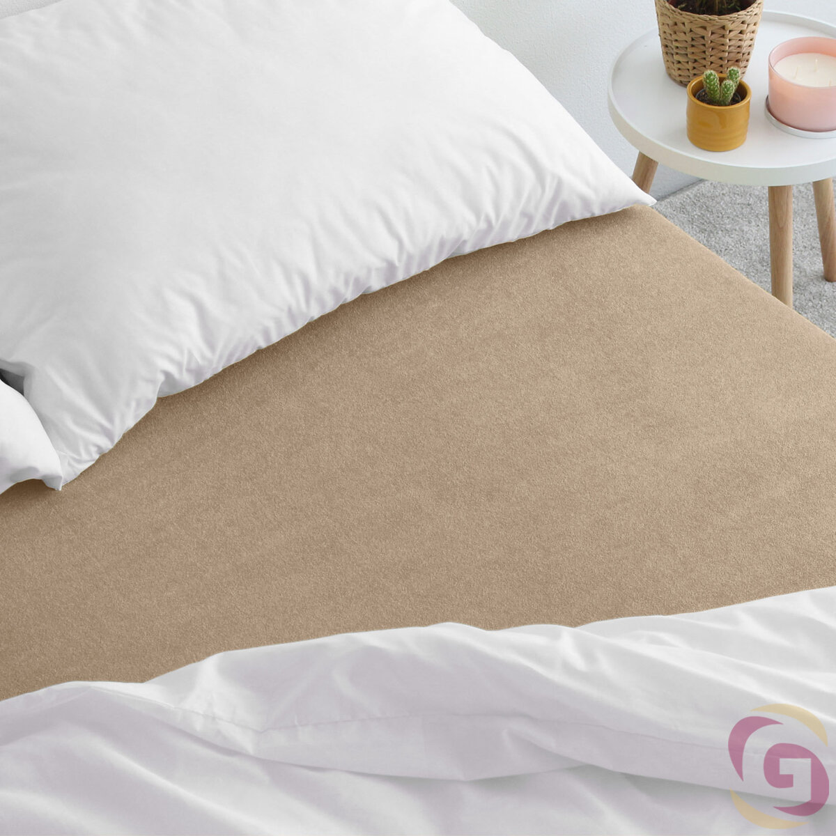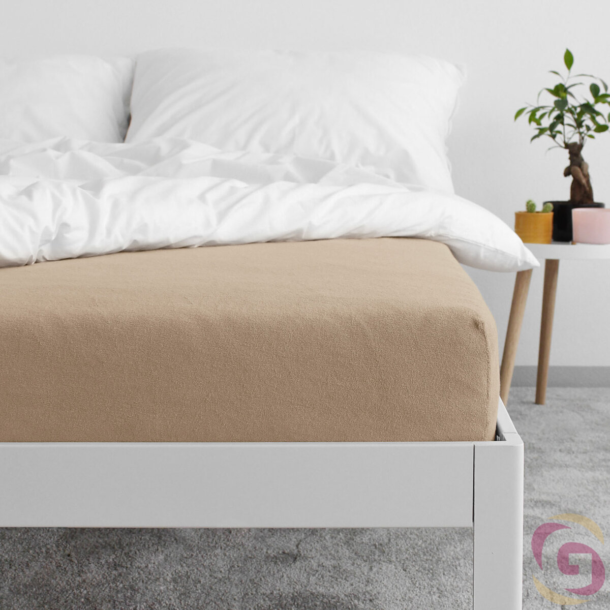 Bettlaken aus Frottee mit Gummiband - hellbraun
