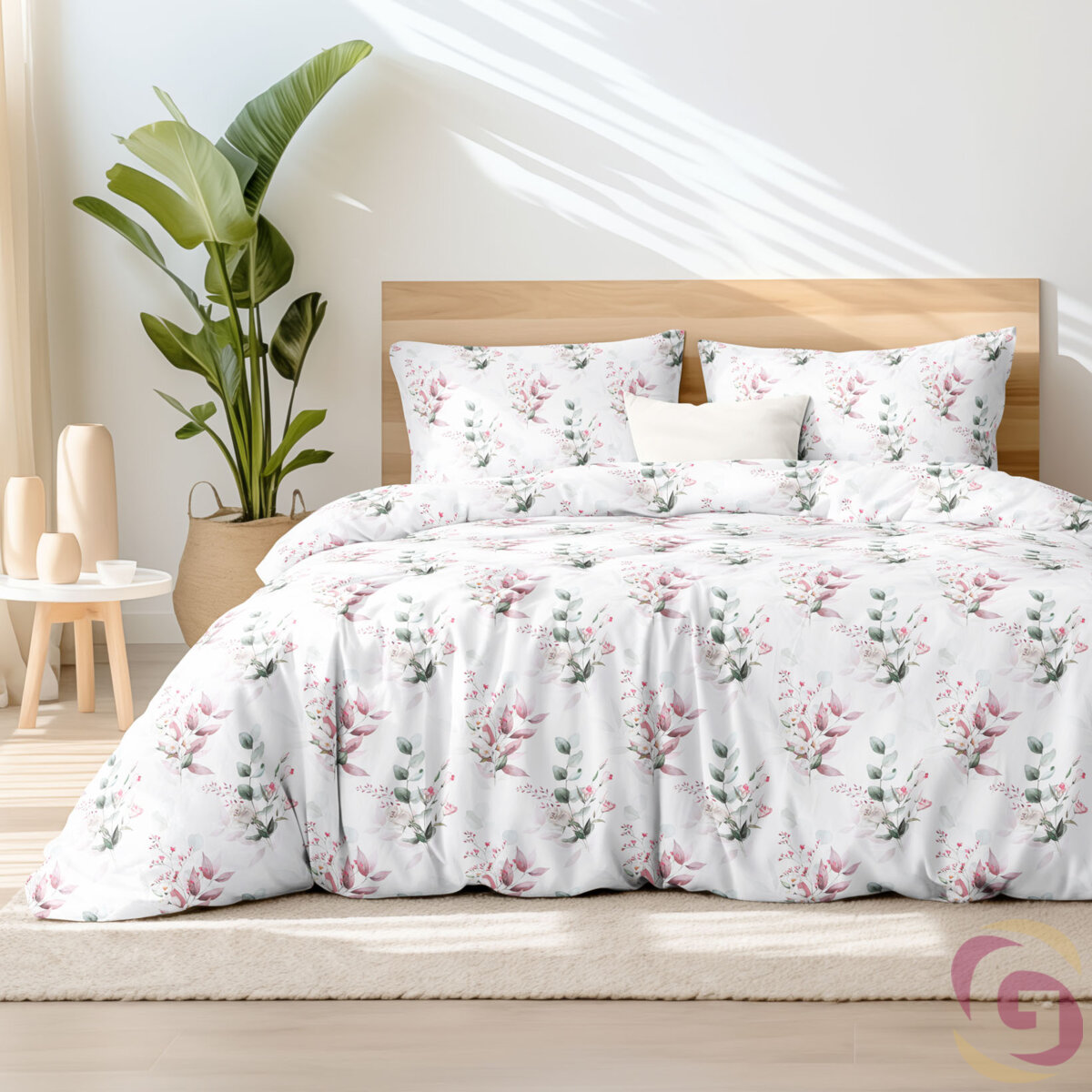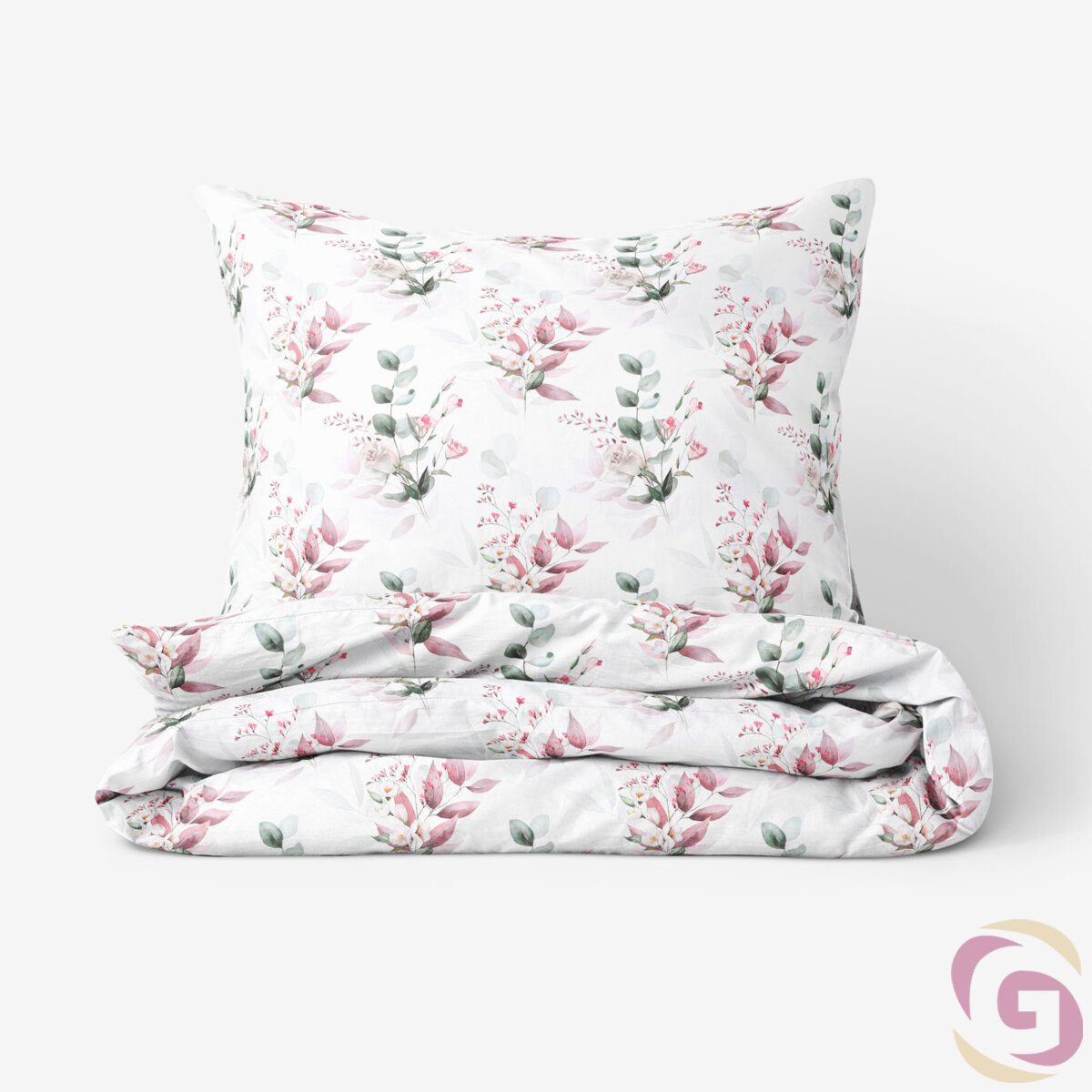 Bettwäsche mit Motiv von mit Motiv zarte Rosen wird eine schöne Dekoration für Ihr Schlafzimmer sein. Es ist aus 100 % glatter Baumwolle mit einem Gewicht von 145 g/m2 hergestellt.