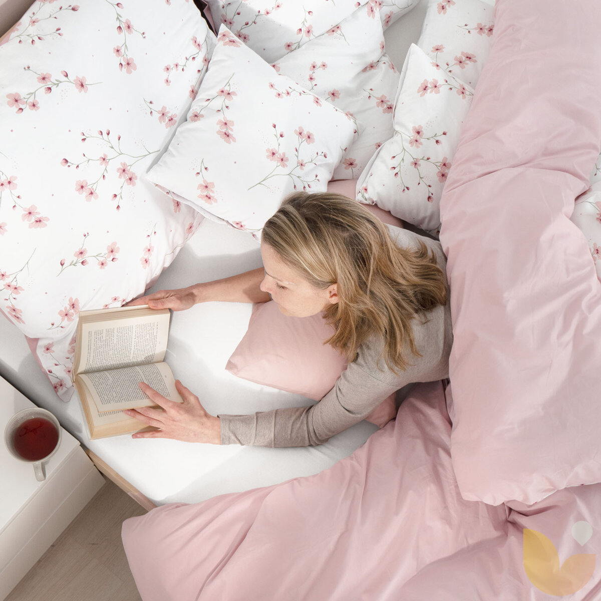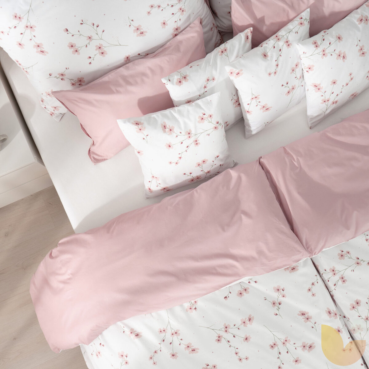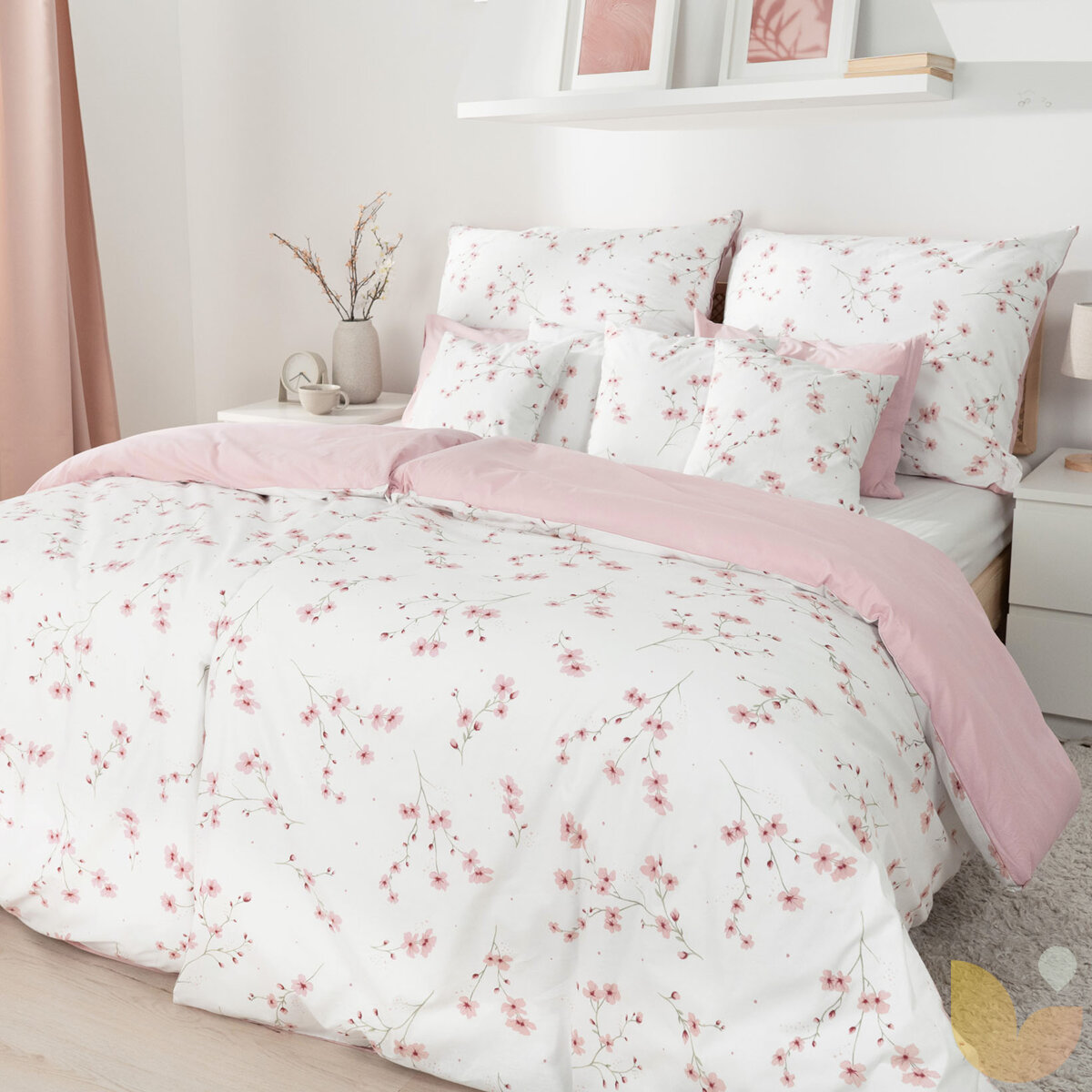 Bettwäsche aus Baumwolle Duo - Blühende Sakura-Kirschbäume mit Puderrosa