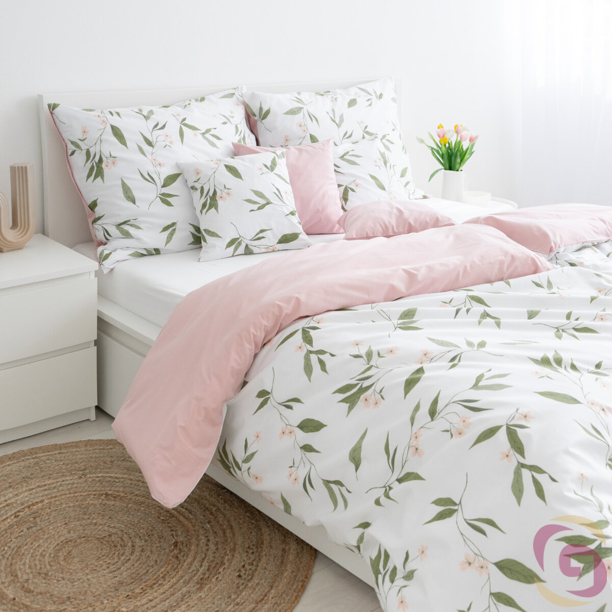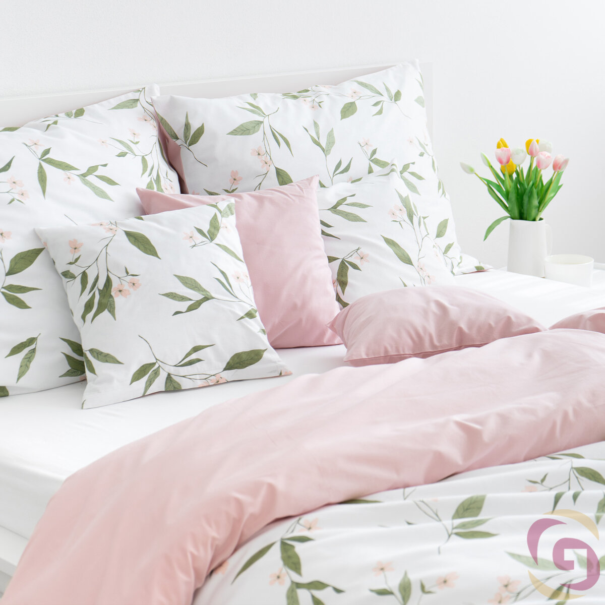 Bettwäsche aus Baumwolle Duo - Duft nach Jasmin mit puderrosa