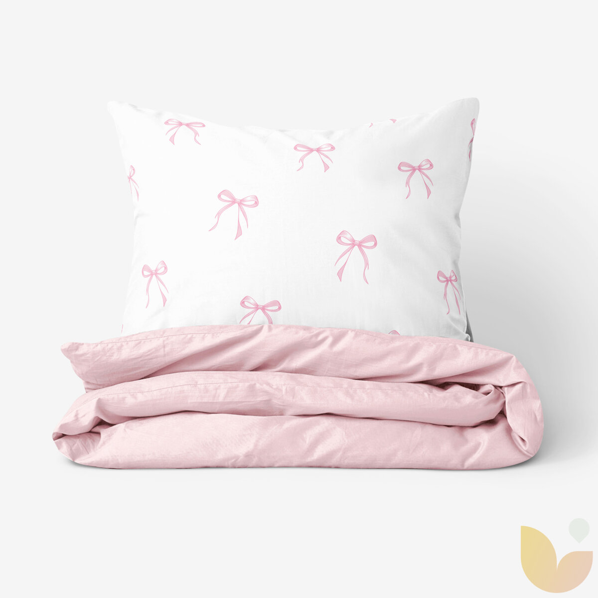 Kinder-Bettwäsche aus Baumwolle Duo - rosa Schleifen mit Puderrosa