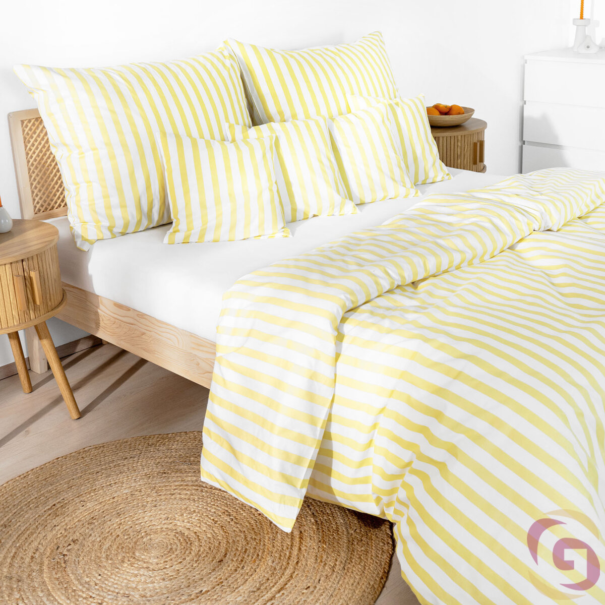 Bettwäsche aus Baumwolle - gelbe Streifen