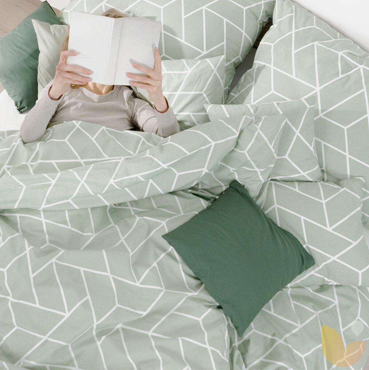 Bettwäsche aus Baumwolle - Mosaik auf Salbeigrün