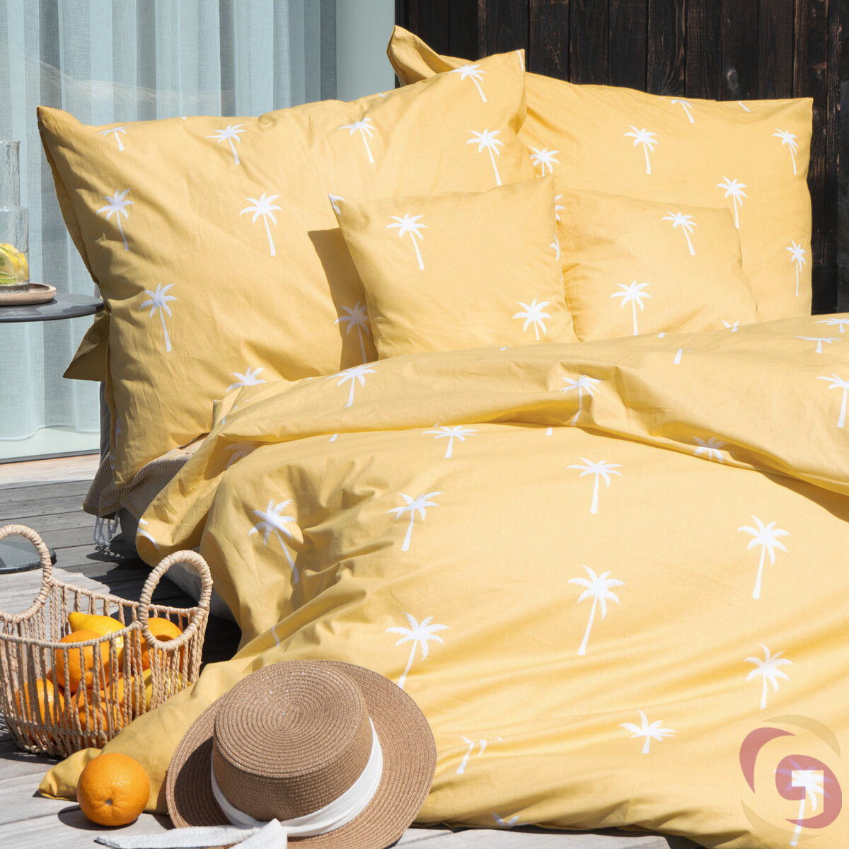 Bettwäsche aus Baumwolle - Palmen auf gelb