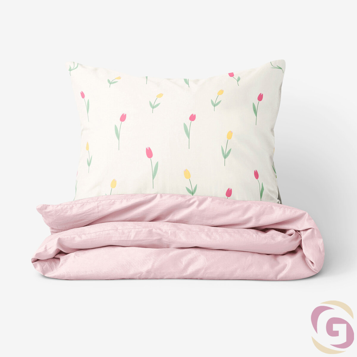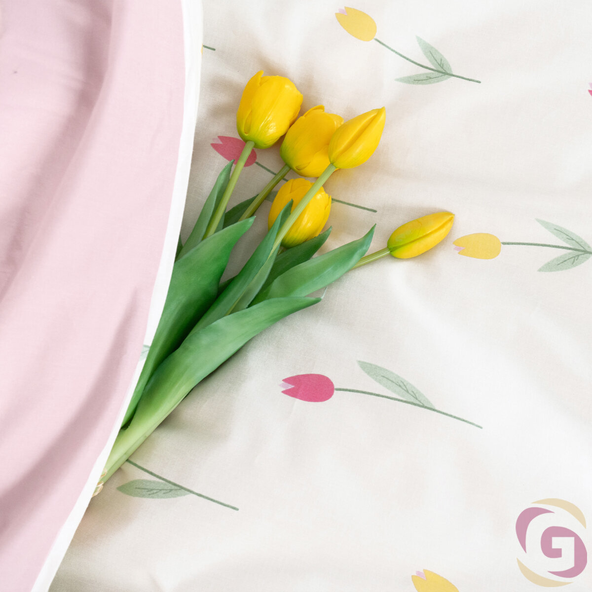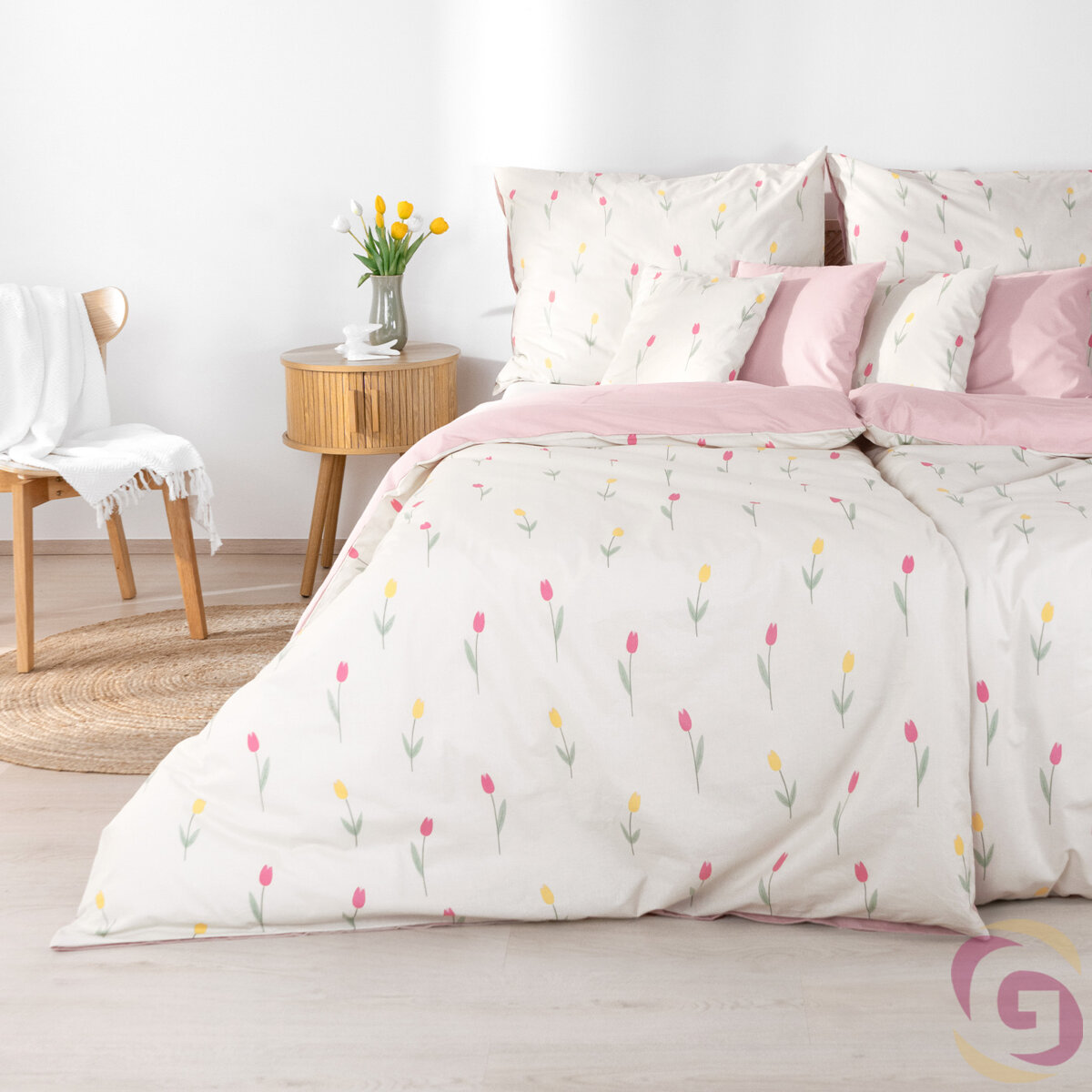 Bettwäsche aus Baumwolle - Tulpen mit Pudderrosa