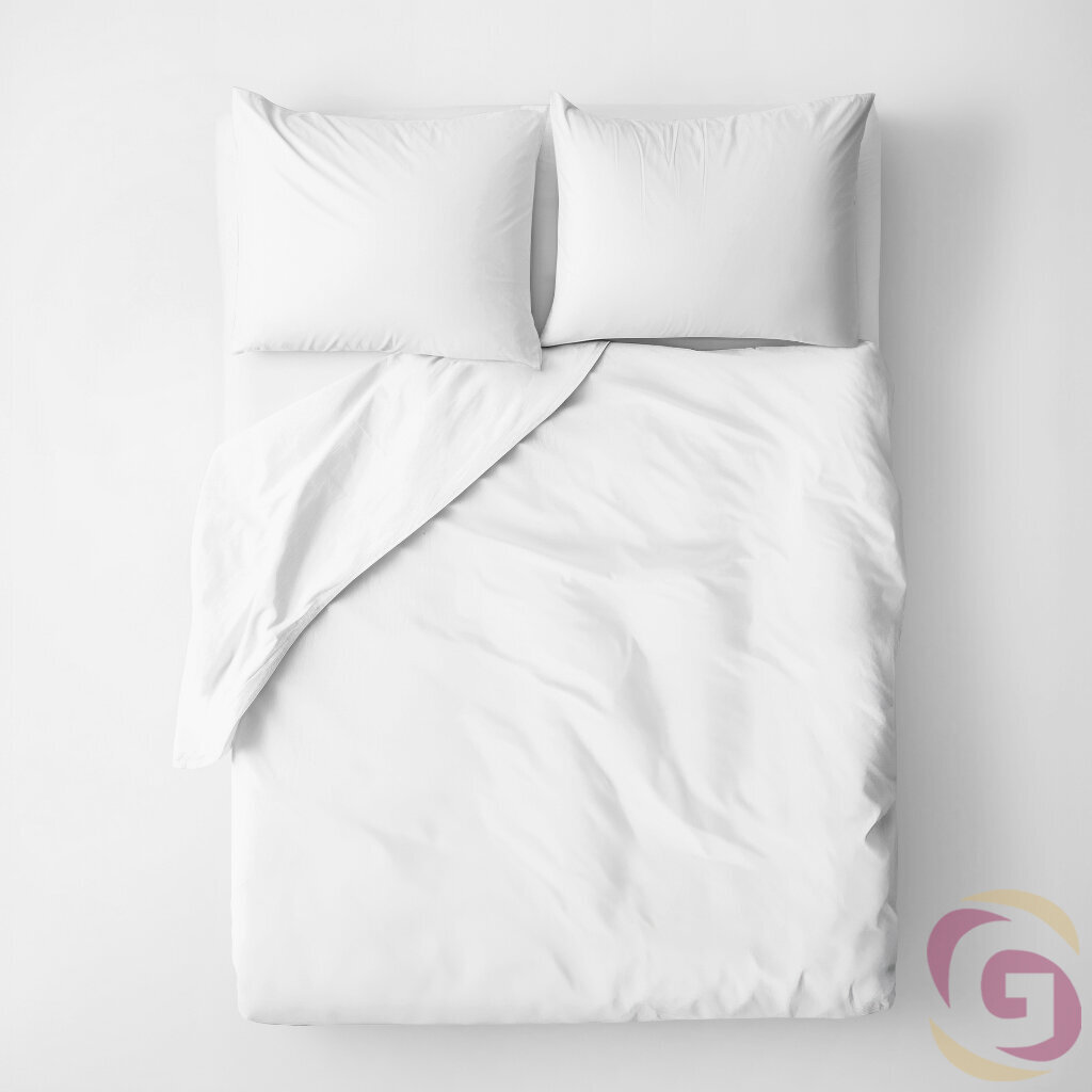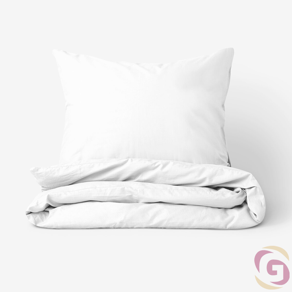Einfarbige Bettwäsche in weißer Farbe wird eine schöne Dekoration für Ihr Schlafzimmer sein. Es ist aus 100 % glatter Baumwolle mit einem Gewicht von 145 g/m2 hergestellt.