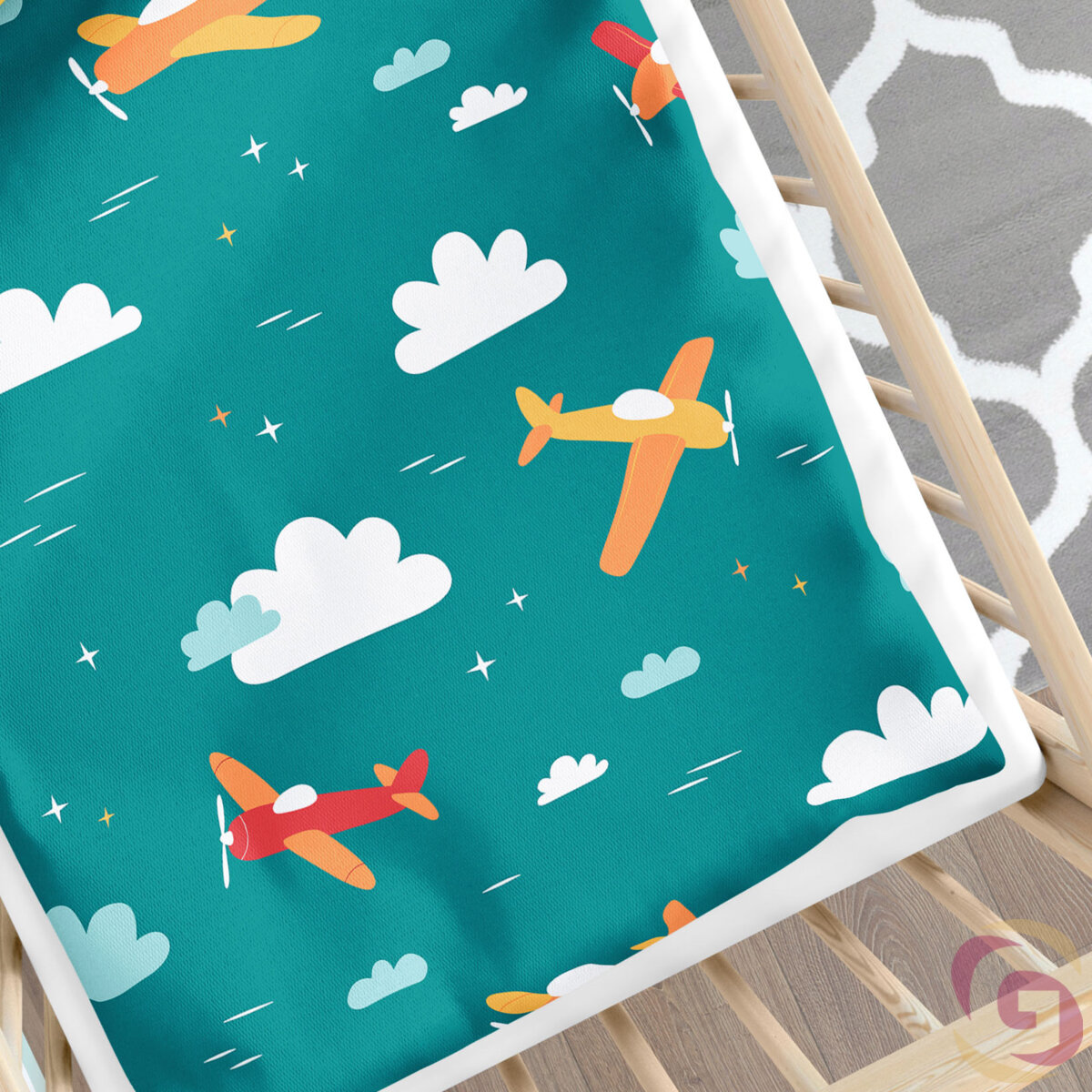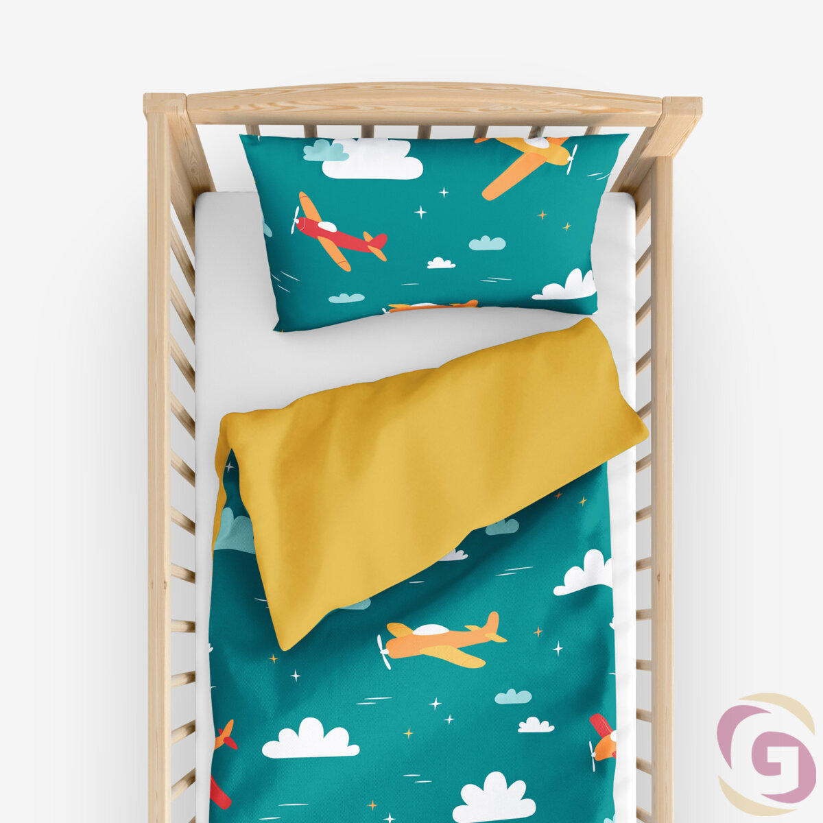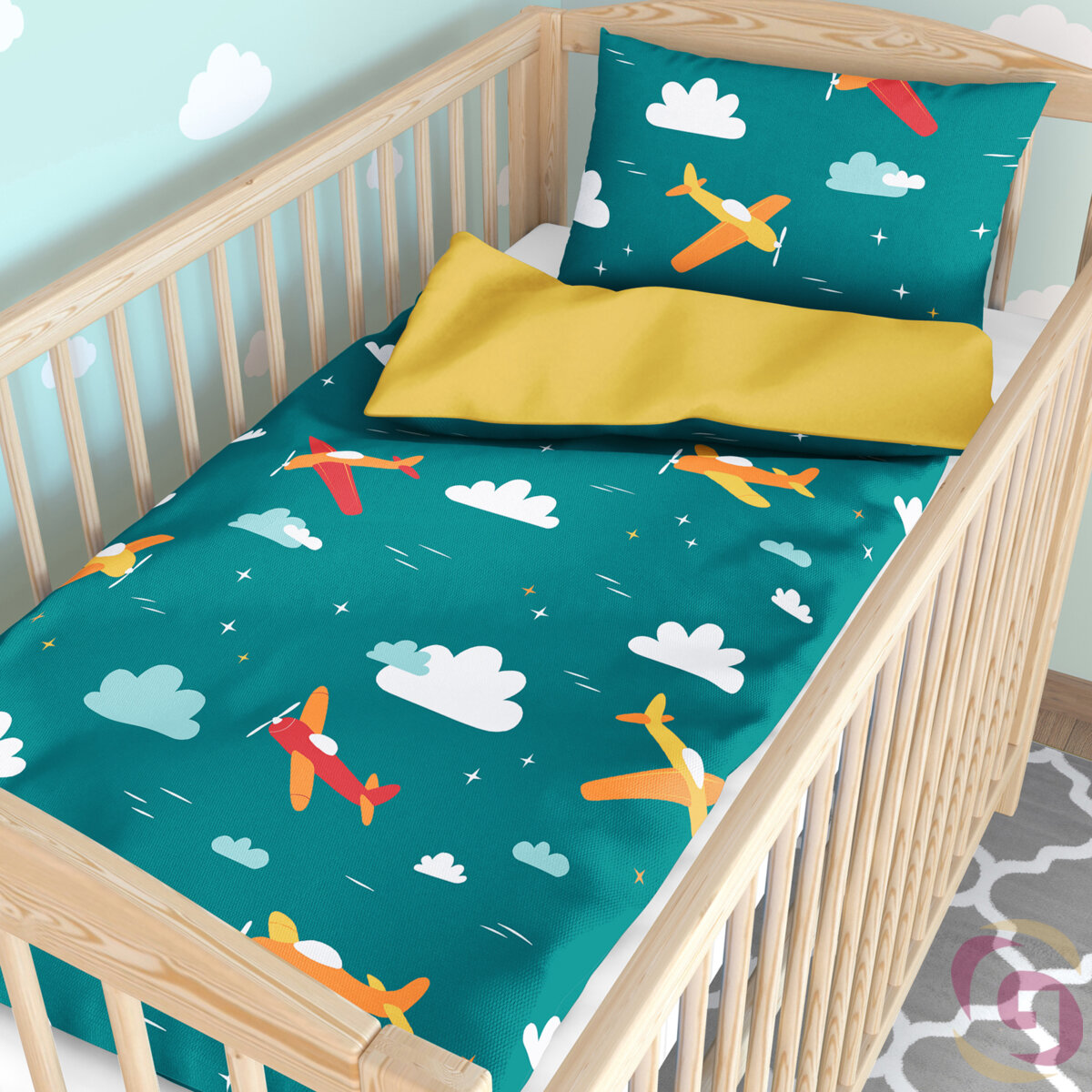 Bettwäsche für Babybetten aus Baumwolle Duo - Abenteuer in der Luft mit Honiggelb