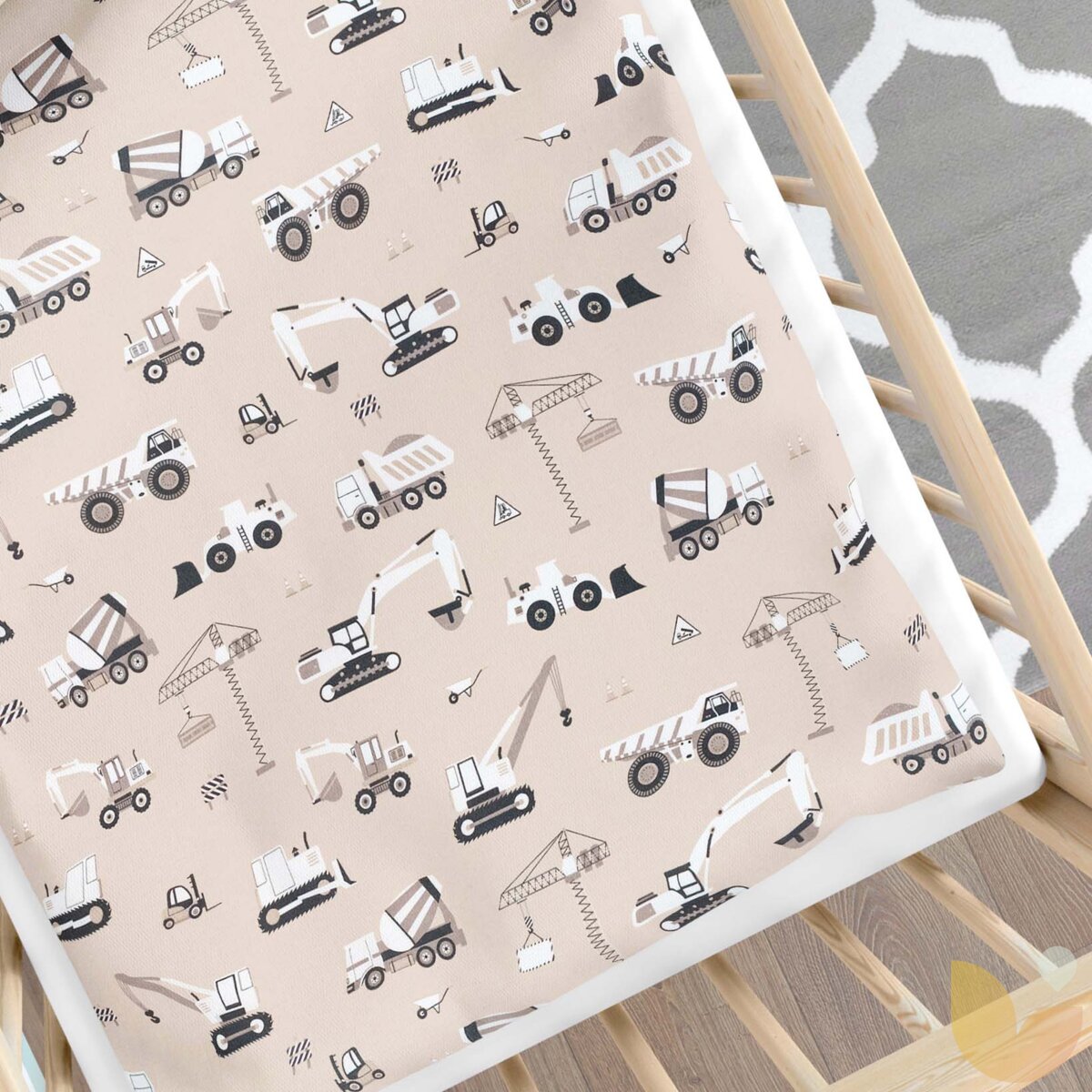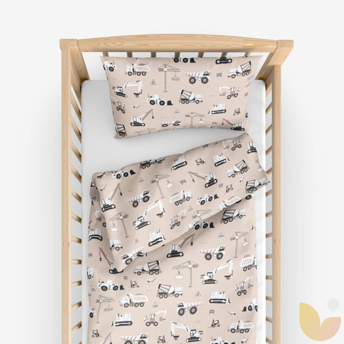 Bettwäsche für Babybetten aus Baumwolle - Lastwagen und Bagger auf Beige