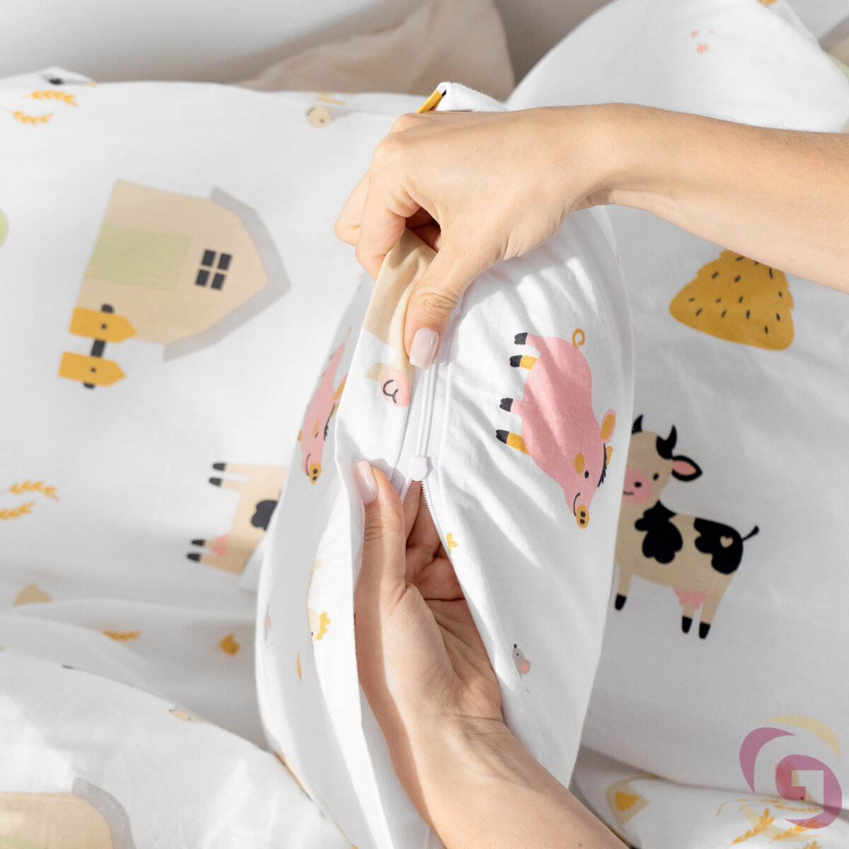 Kinder-Kissenbezug aus Baumwolle - Leben auf dem Bauernhof