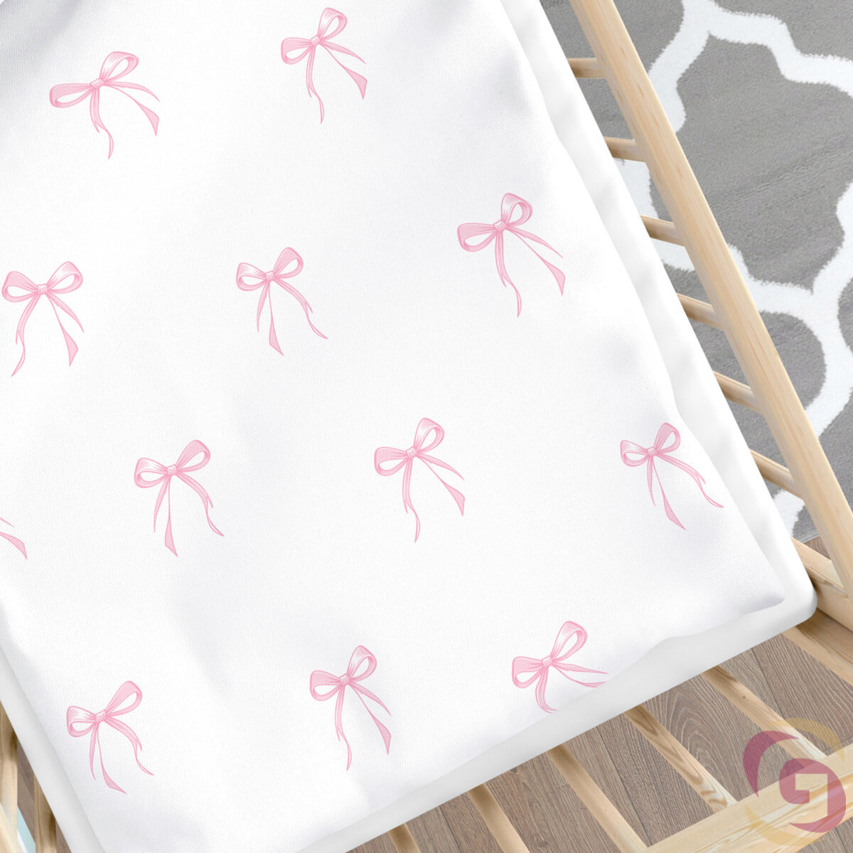 Spannbetttuch aus Baumwolle für Babybetten - rosa Schleifen