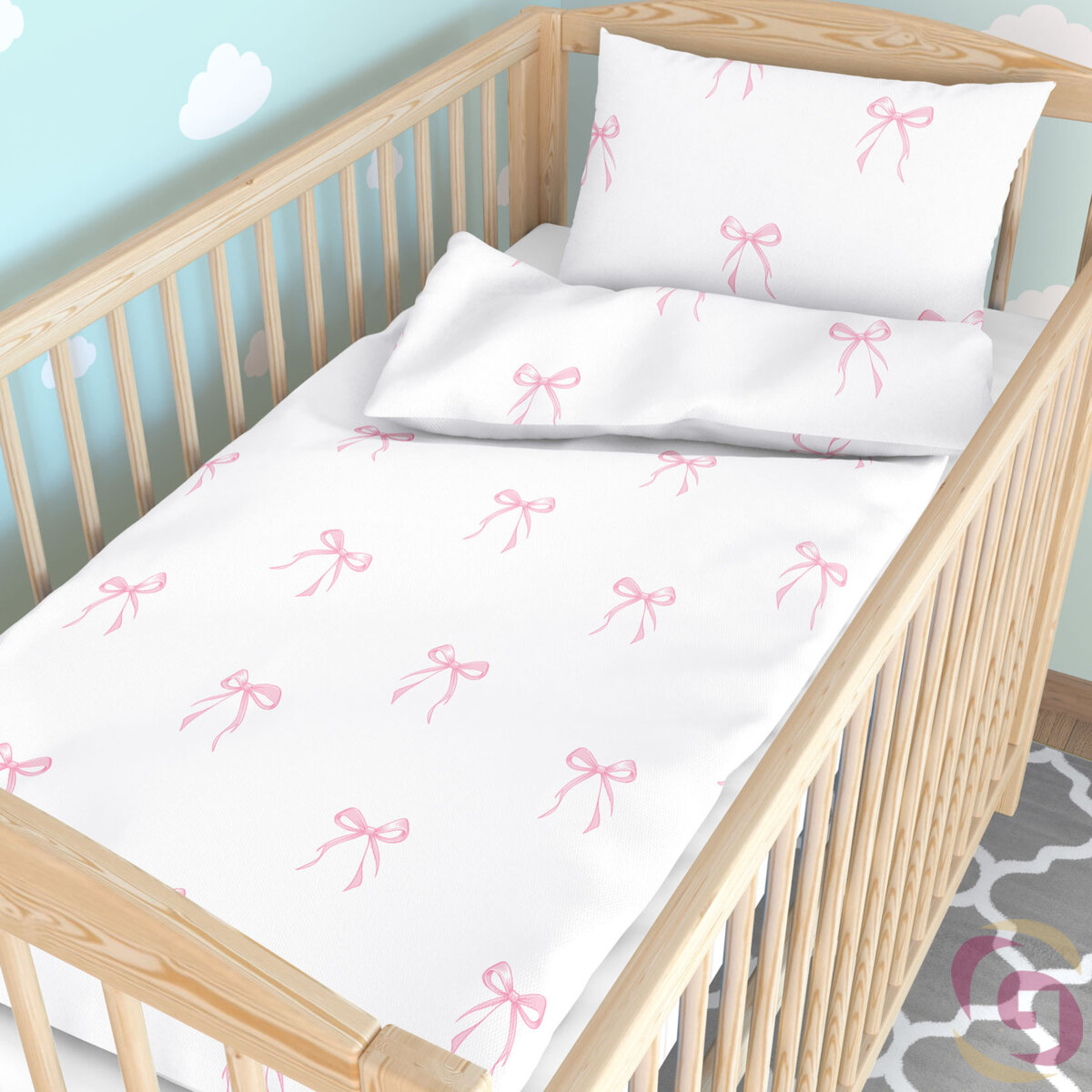 Bettwäsche für Babybetten aus Baumwolle - rosa Schleifen