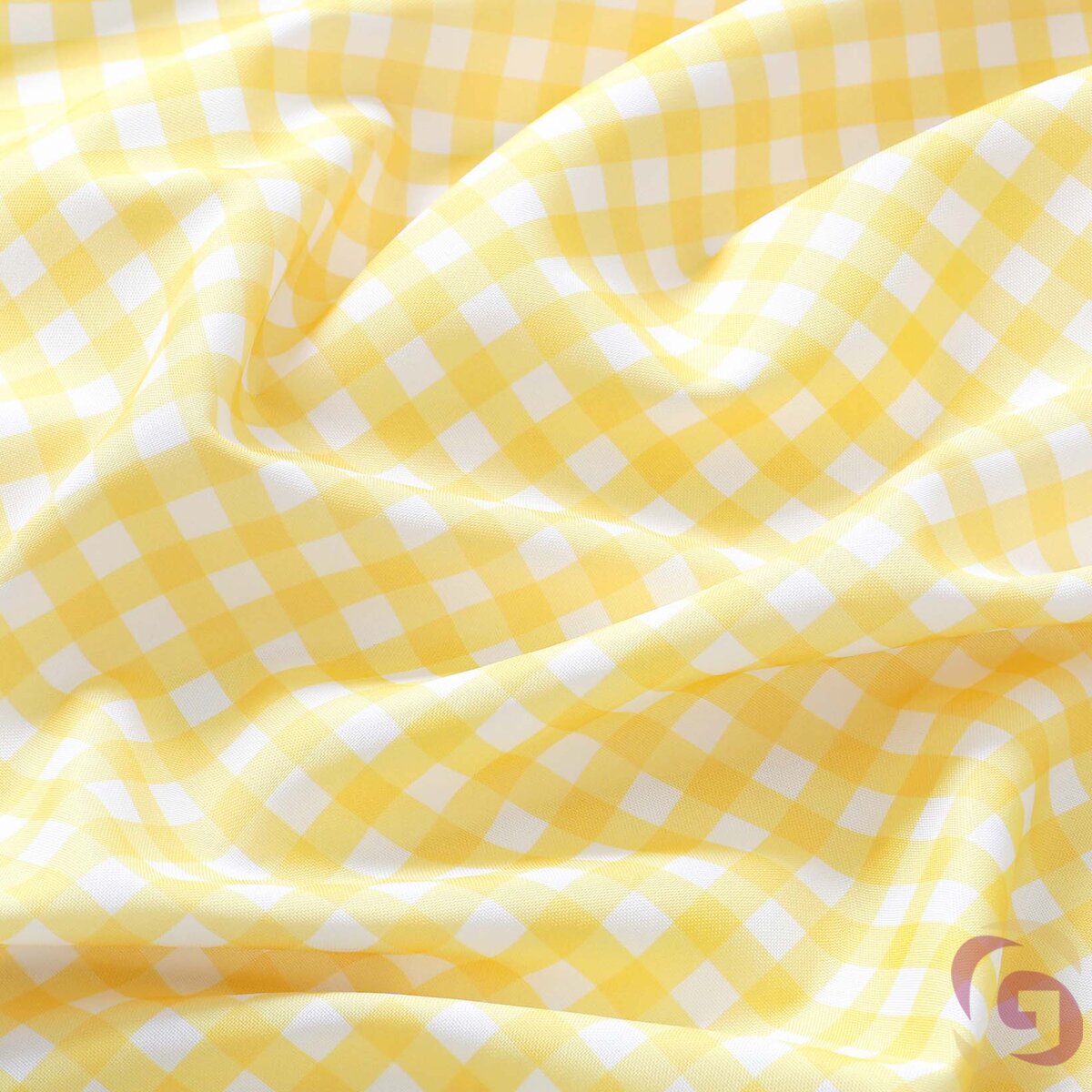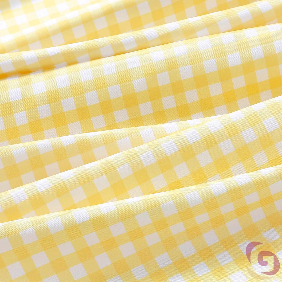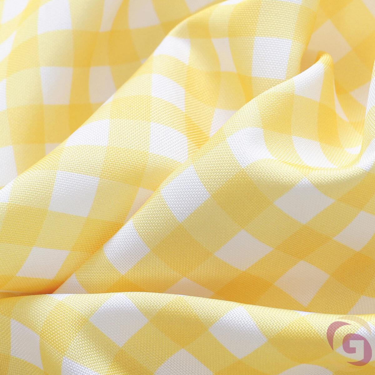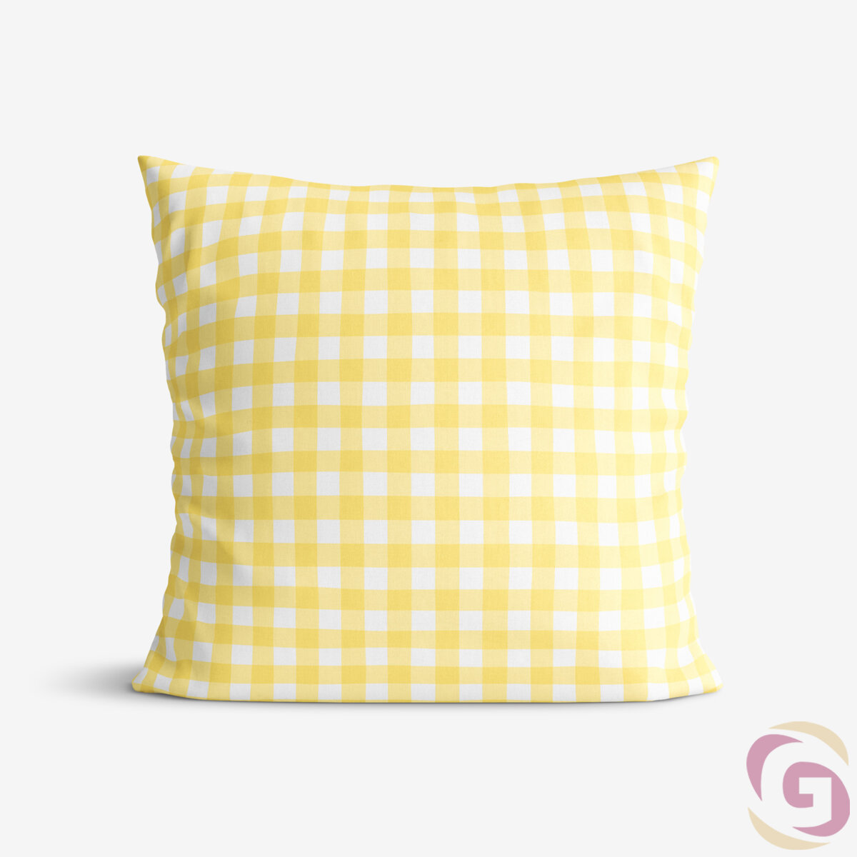 Die dekorative Decke mit gelben Würfeln macht jeden Sitzplatz im Freien gemütlich, ob im Garten, auf der Terrasse oder im Landhaus. Das dekorative Motiv kommt auf einer Bank, einem Sessel oder einer Schaukel besonders gut und sorgt für eine angenehme Landhausatmosphäre.