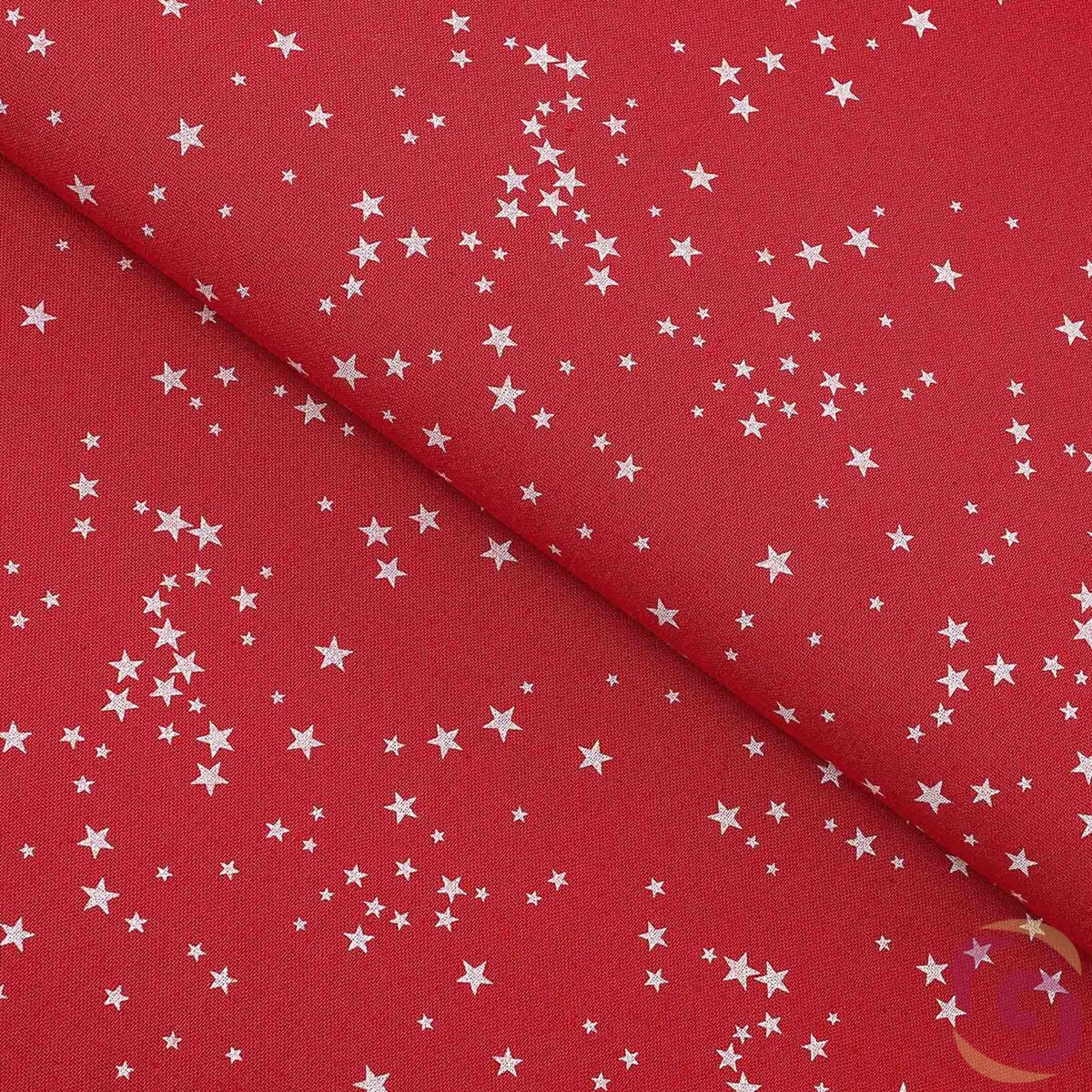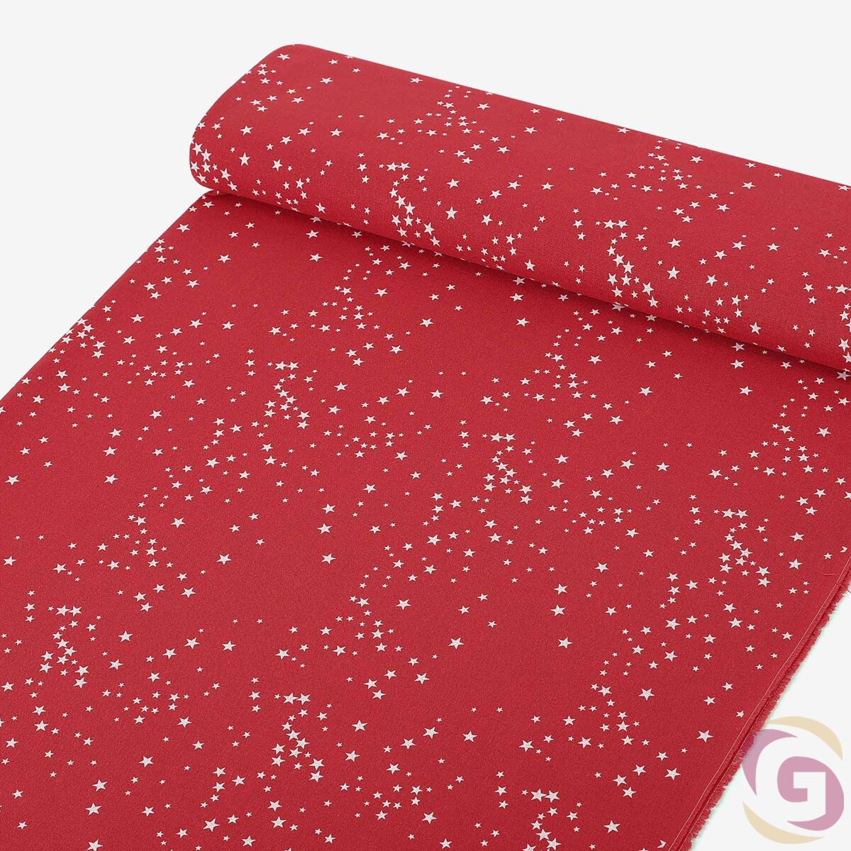 Weihnachtsstoff Valencia - Sterne auf rotem Hintergrund