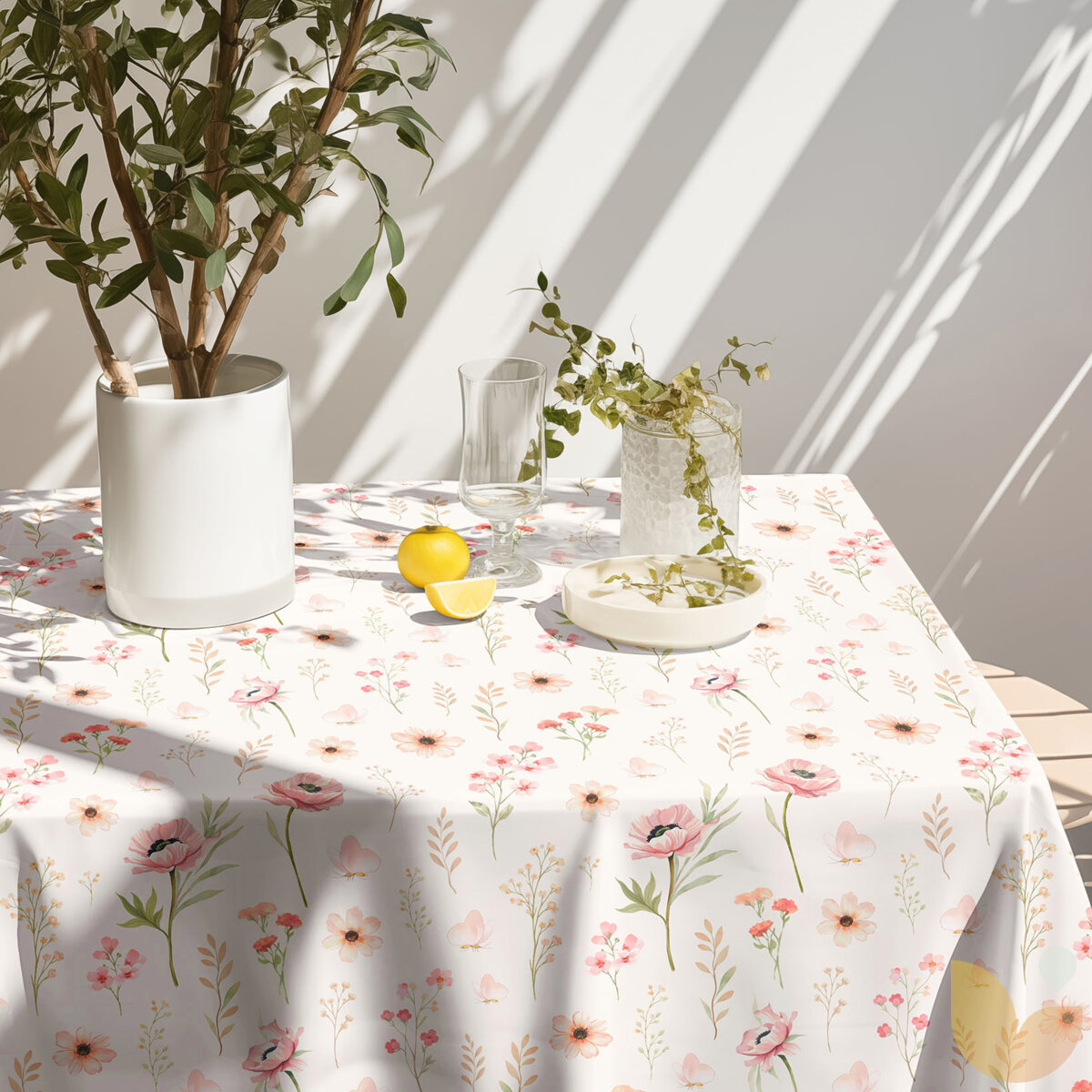 Eckige Teflon-Tischdecke - Rosa Blümchen