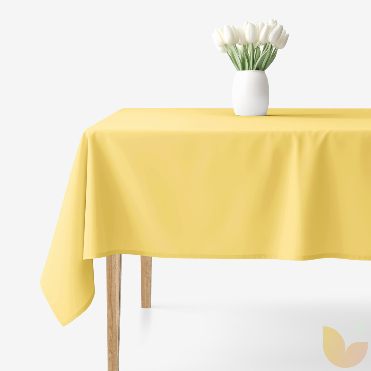 Die eckige Tischdecke in Farbe gelb aus 100 % Baumwollgewebe mit einem Gewicht von 145 g/m2. Die Tischdecke ist rundum gesäumt.