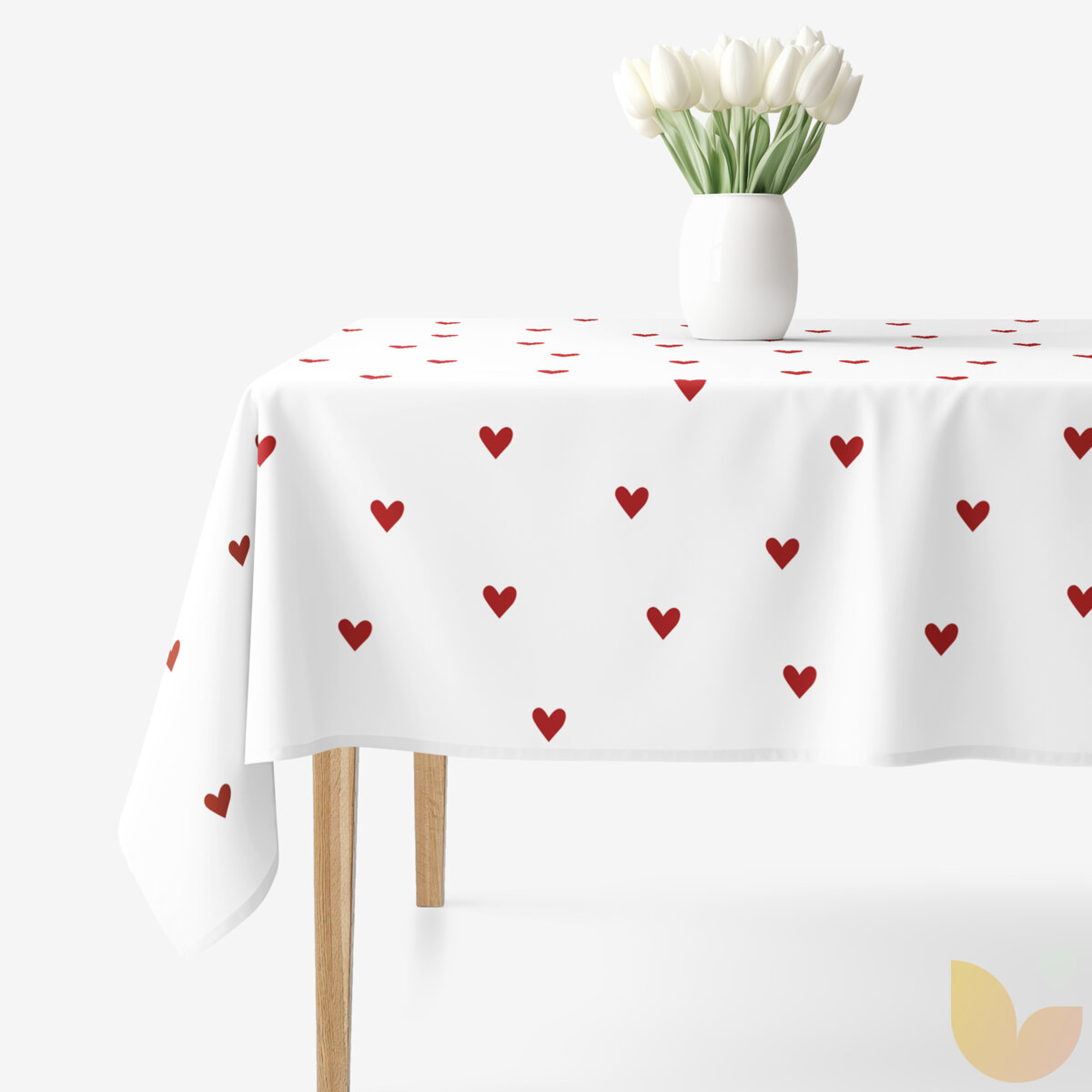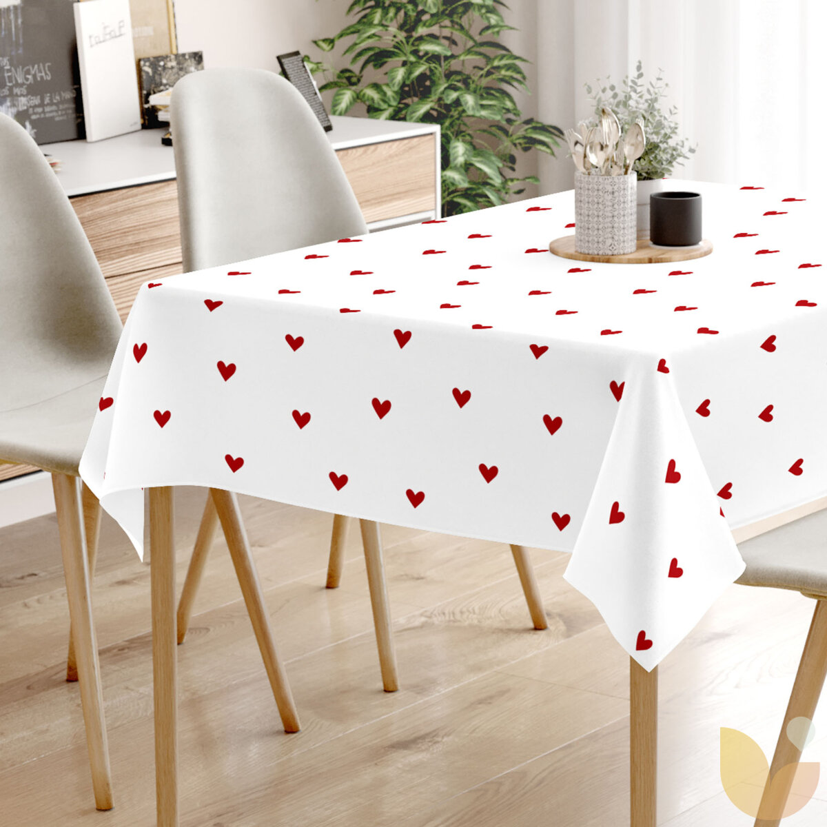 Eckige Tischdecke 100% Baumwolle - Rote Herzchen auf Weiß