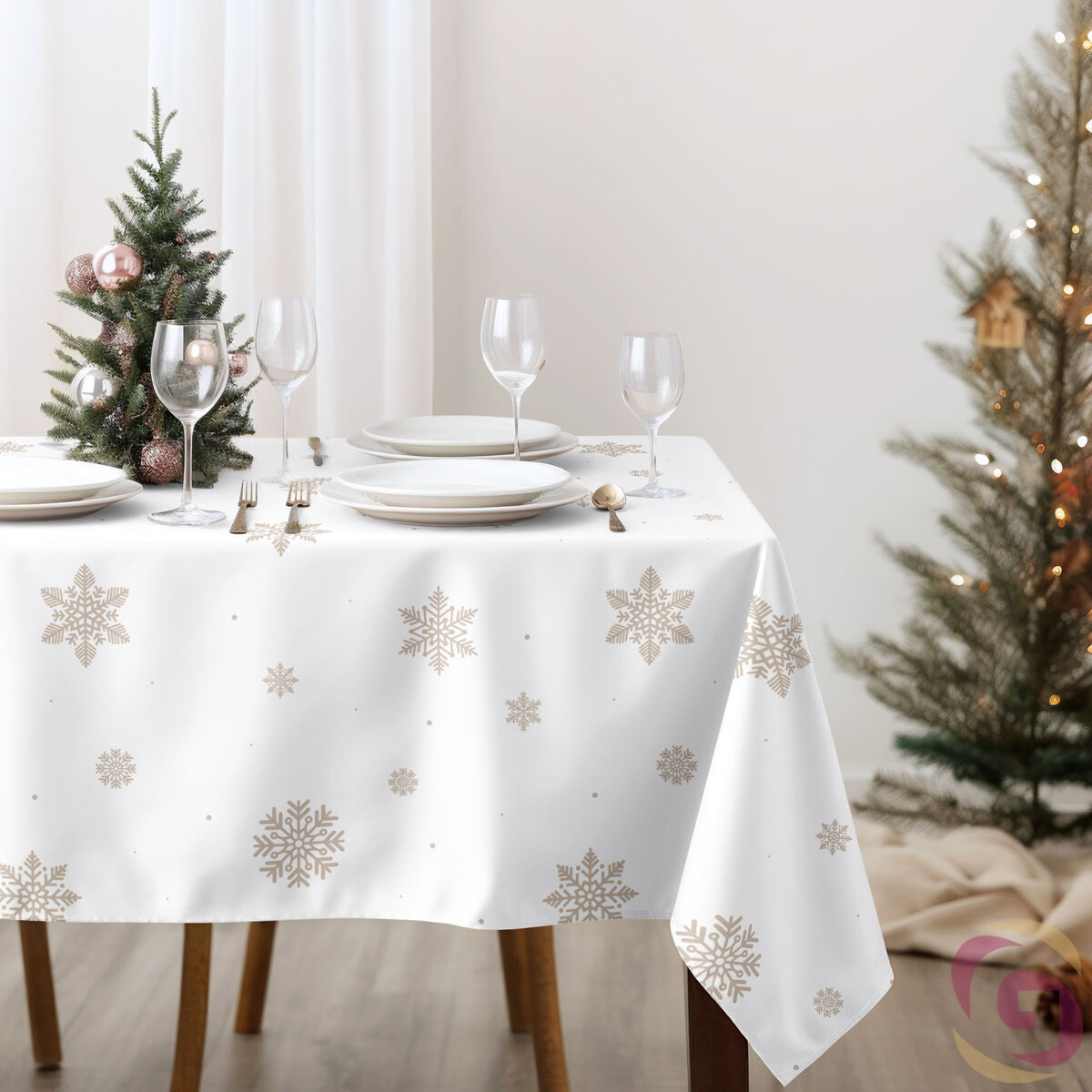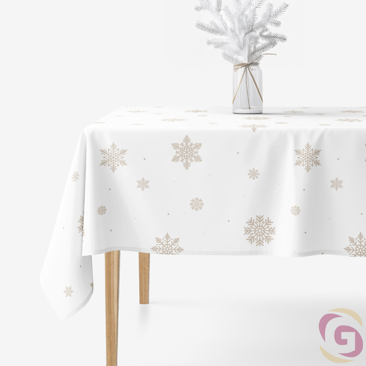 Eckige weihnachtliche Tischdecke 100% Baumwolle - Schneeflocken auf Weiß