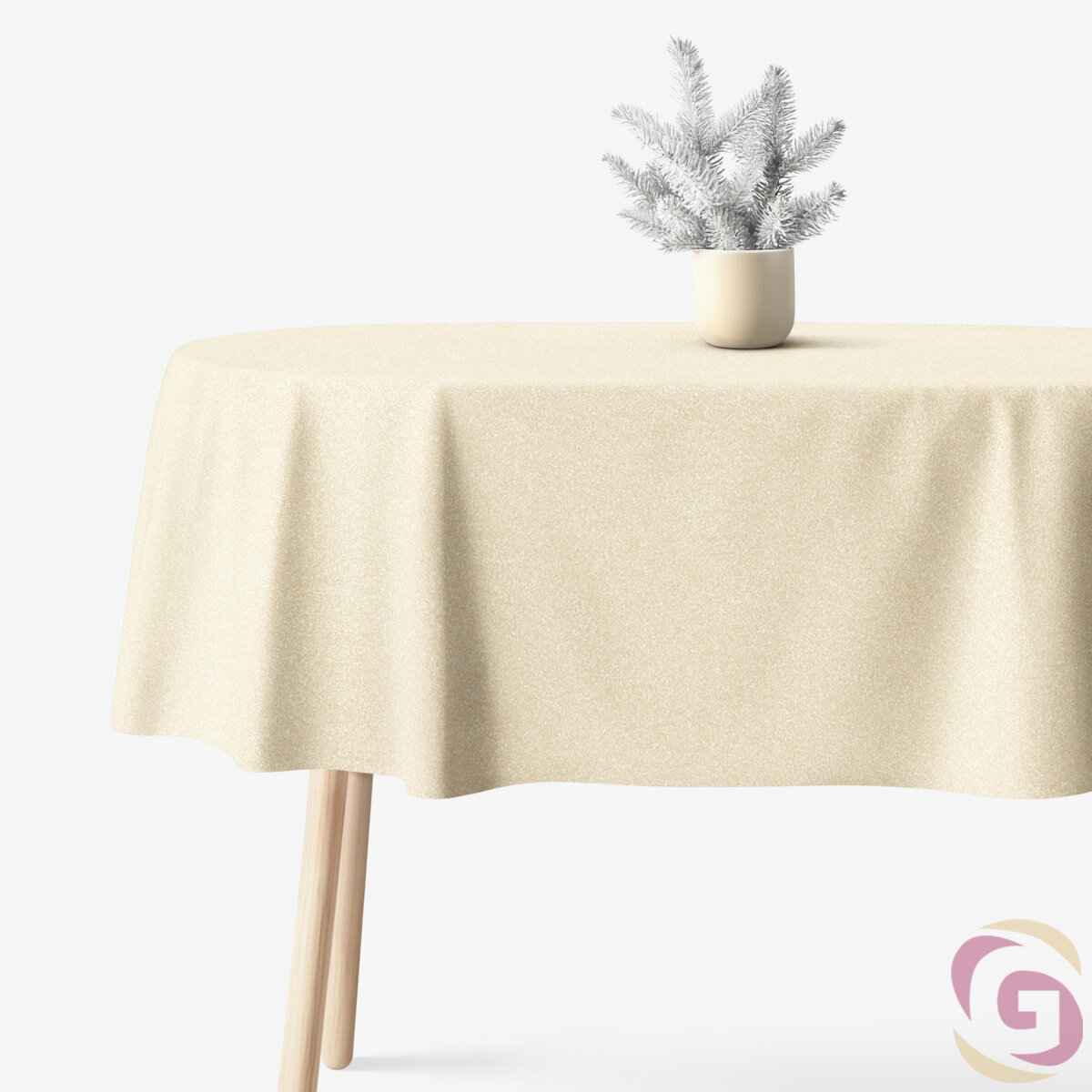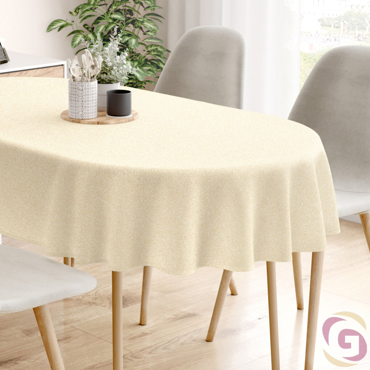Exklusiver ovaler Tischdecke mit Teflonbeschichtung in Goldener mit Glitzerdetails. Hergestellt aus hochwertigem 100% Polyestergewebe (Gewicht 205 g/m²). Der Tischdecke behält seine Form sehr gut und eignet sich für jeden ovalen Tisch. Dieser wunderschöne Tischdecke verschönert Ihr Interieur perfekt.