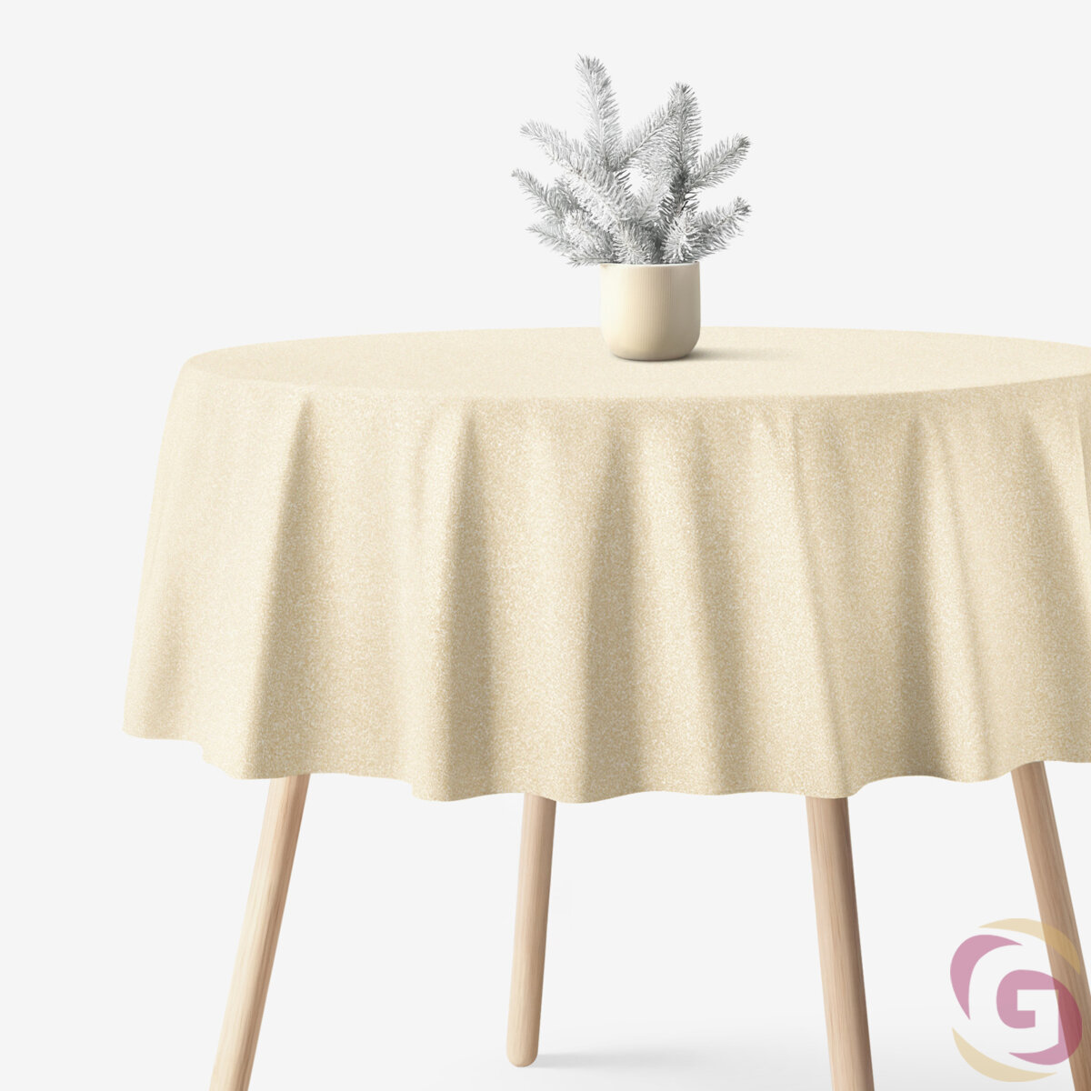 Exklusiver runder Tischdecke mit Teflonbeschichtung in Goldener mit Glitzerdetails. Hergestellt aus hochwertigem 100% Polyestergewebe (Gewicht 205 g/m²). Der Tischdecke behält seine Form sehr gut und eignet sich für jeden runden Tisch. Dieser wunderschöne Tischdecke verschönert Ihr Interieur perfekt.