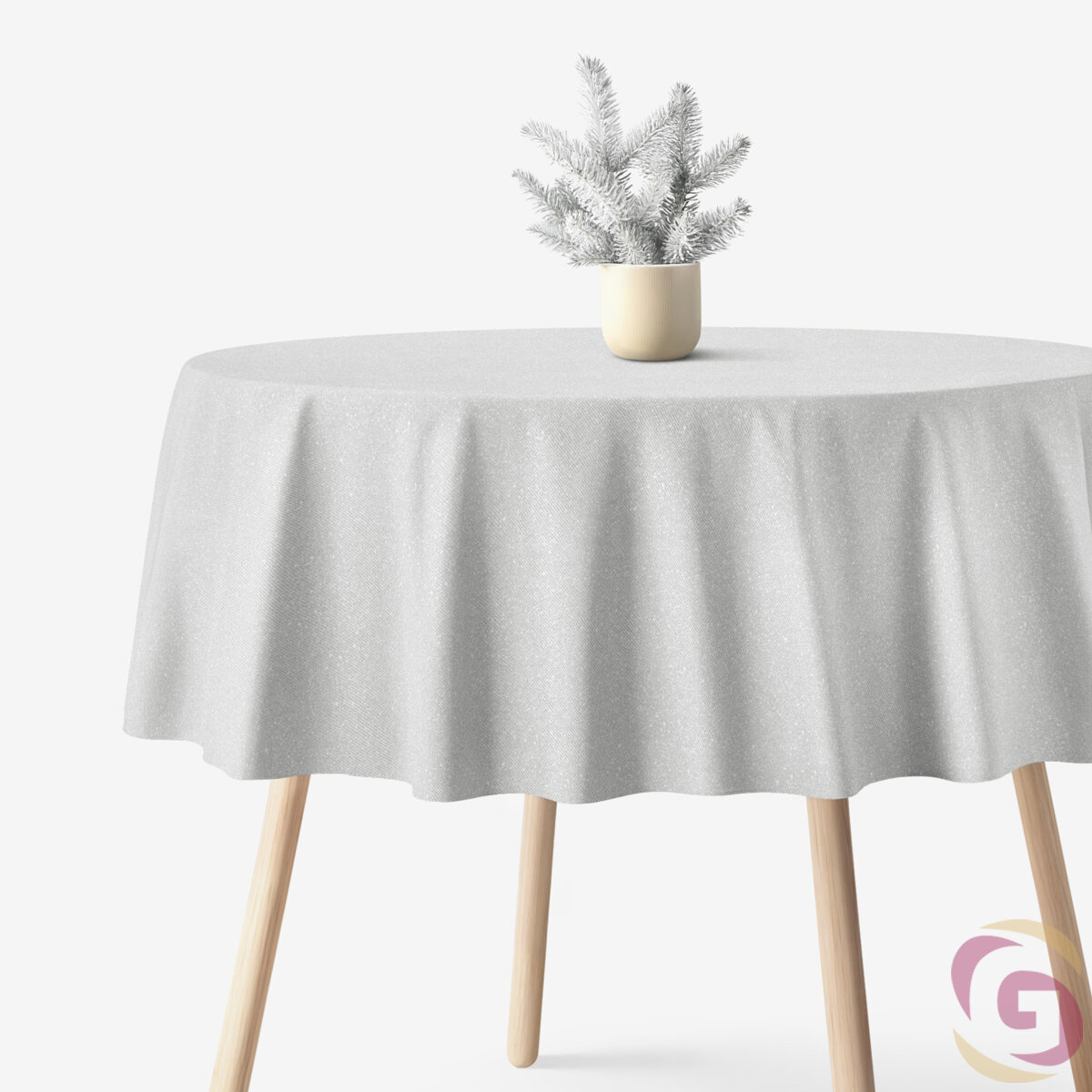 Exklusiver runder Tischdecke mit Teflonbeschichtung in Silber mit Glitzerdetails. Hergestellt aus hochwertigem 100% Polyestergewebe (Gewicht 205 g/m²). Der Tischdecke behält seine Form sehr gut und eignet sich für jeden runden Tisch. Dieser wunderschöne Tischdecke verschönert Ihr Interieur perfekt.
