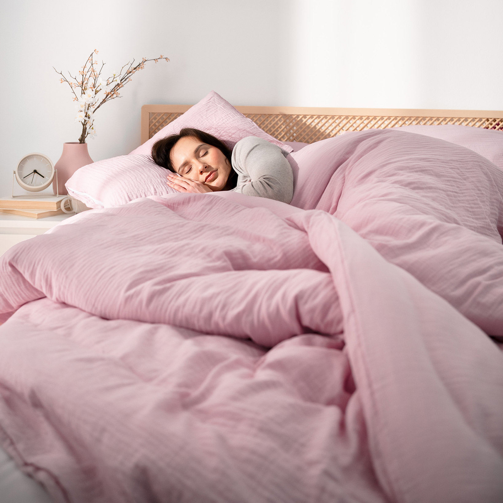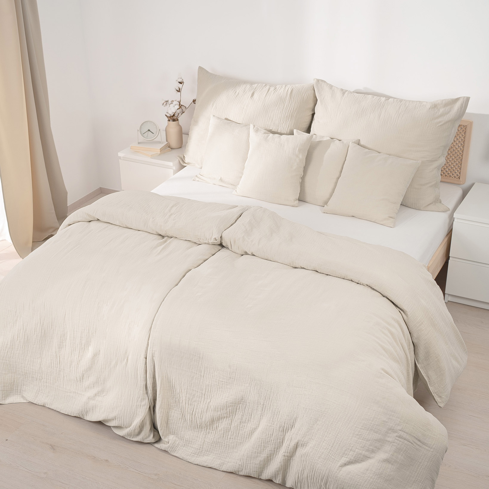 Der schönste Tag beginnt und endet im Bett.💞 Schauen Sie sich auch unsere Spannbettlaken und Kissen an, die mit Musselin eine perfekte Harmonie bilden.
