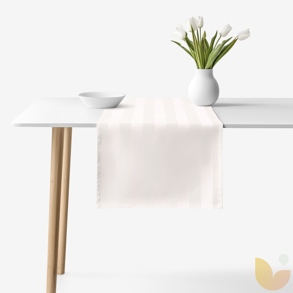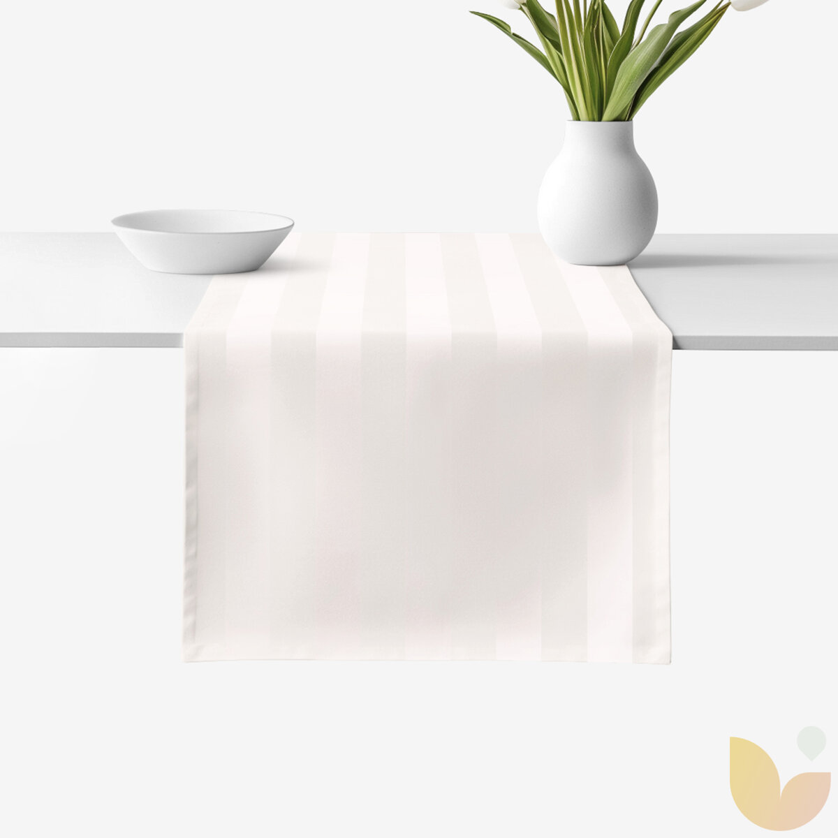 Festliche Damast-Tischläufer - creme Streifen mit Satin-Glanz