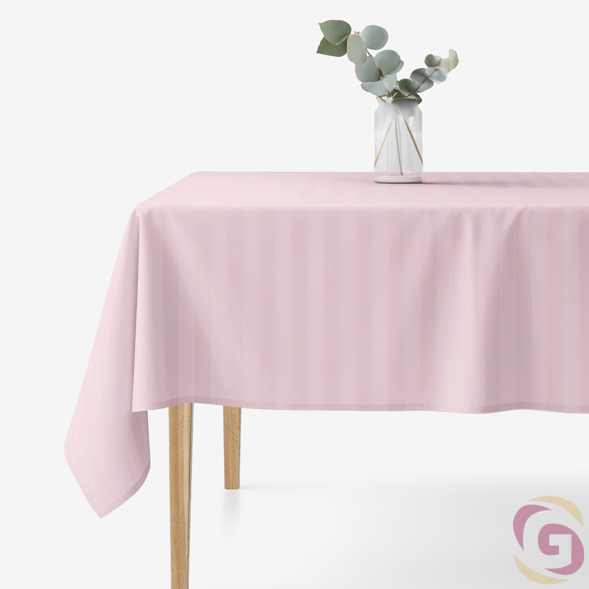 Festliche eckige Damast-Tischdecke - altrosa Streifen mit Satin-Glanz