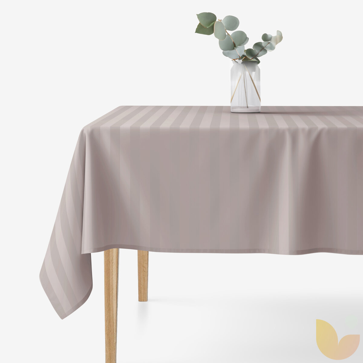 Festliche eckige Damast-Tischdecke - graubraun Streifen mit Satin-Glanz