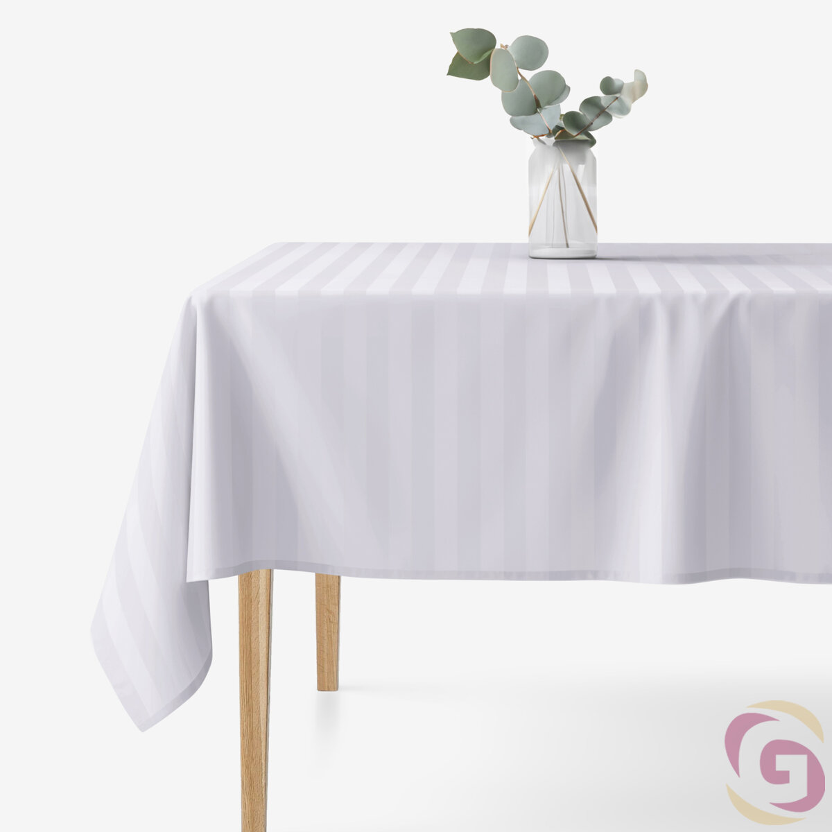 Die Damasttischdecke in hellgrau passt perfekt zu festlichen und alltäglichen Mahlzeiten. Dezente 3 cm breite Streifen verleihen der Tischdecke ein zeitloses und luxuriöses Aussehen. Genießen Sie eine Qualität, die das Auge erfreut und jedes Sitzen am Tisch zu einem angenehmen Moment macht.