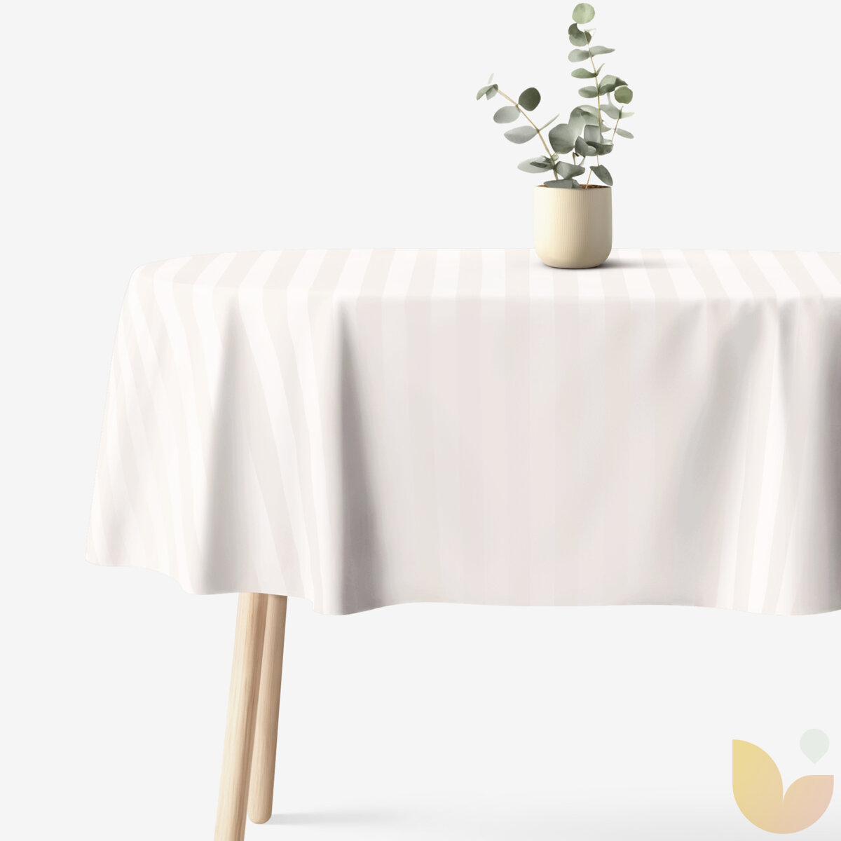 Festliche runde Damast-Tischdecke - creme Streifen mit Satin-Glanz