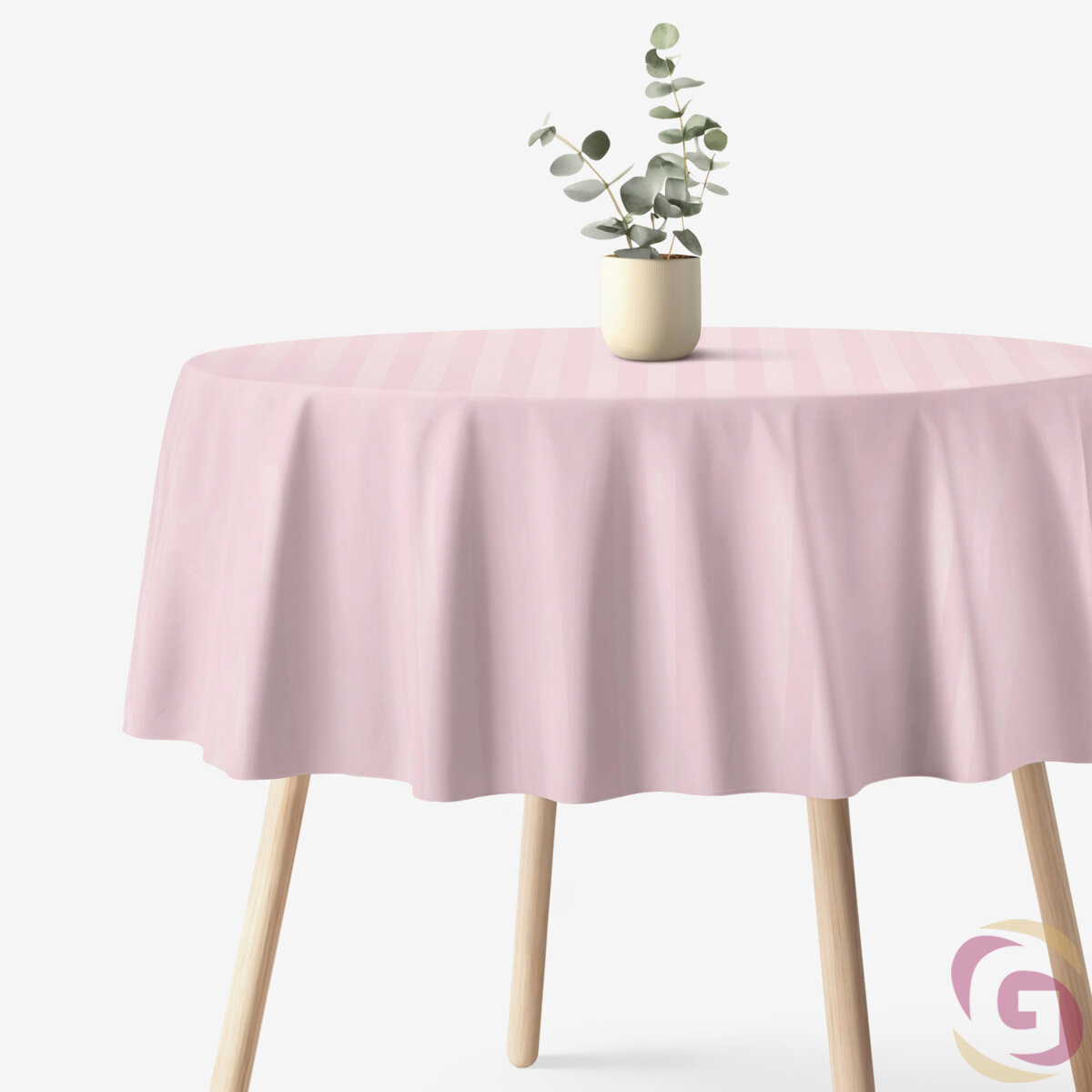 Festliche runde Damast-Tischdecke - altrosa Streifen mit Satin-Glanz
