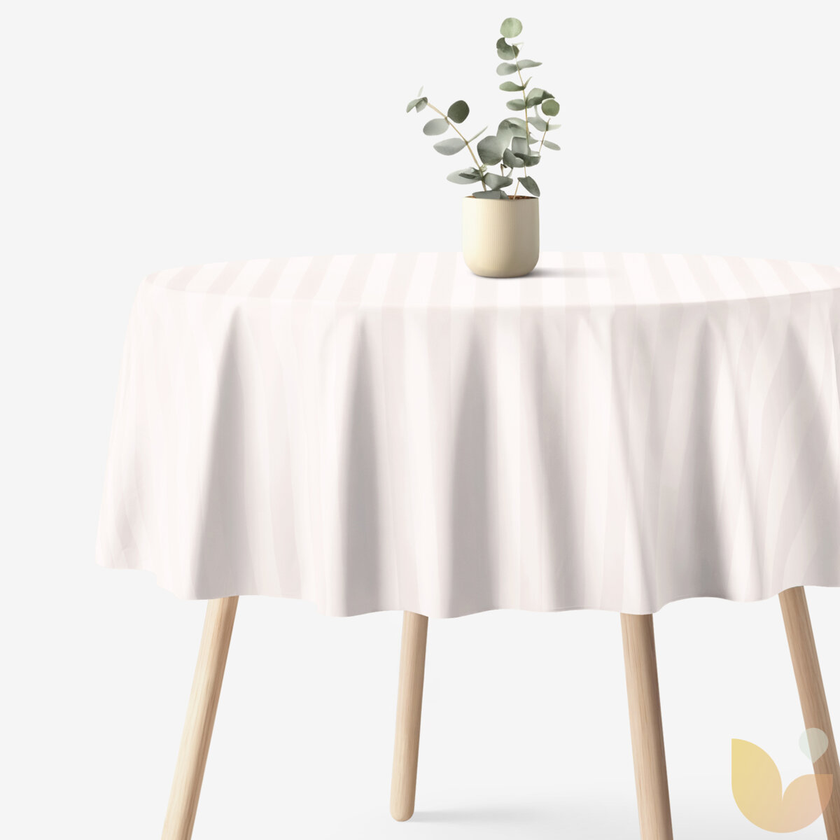 Festliche runde Damast-Tischdecke - creme Streifen mit Satin-Glanz