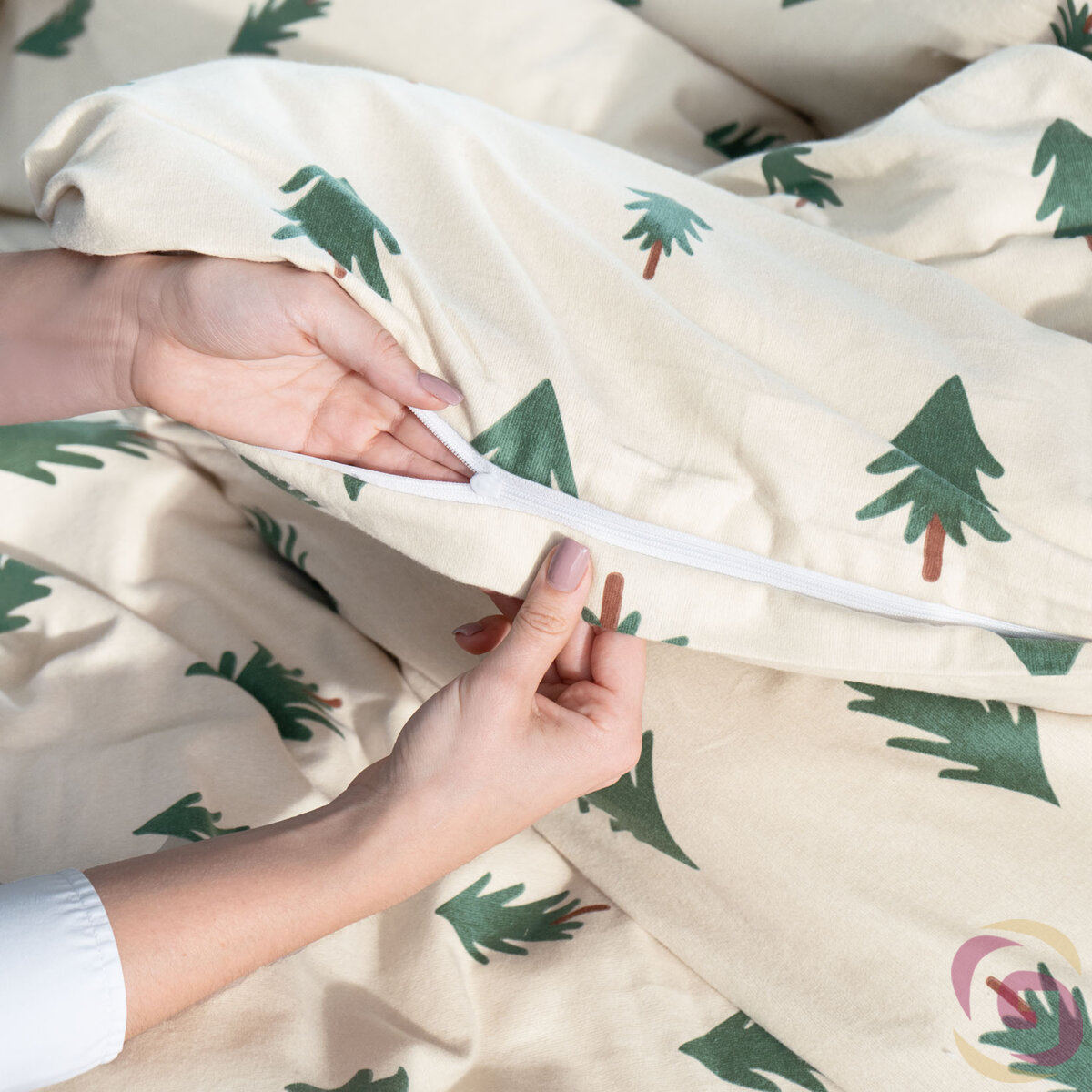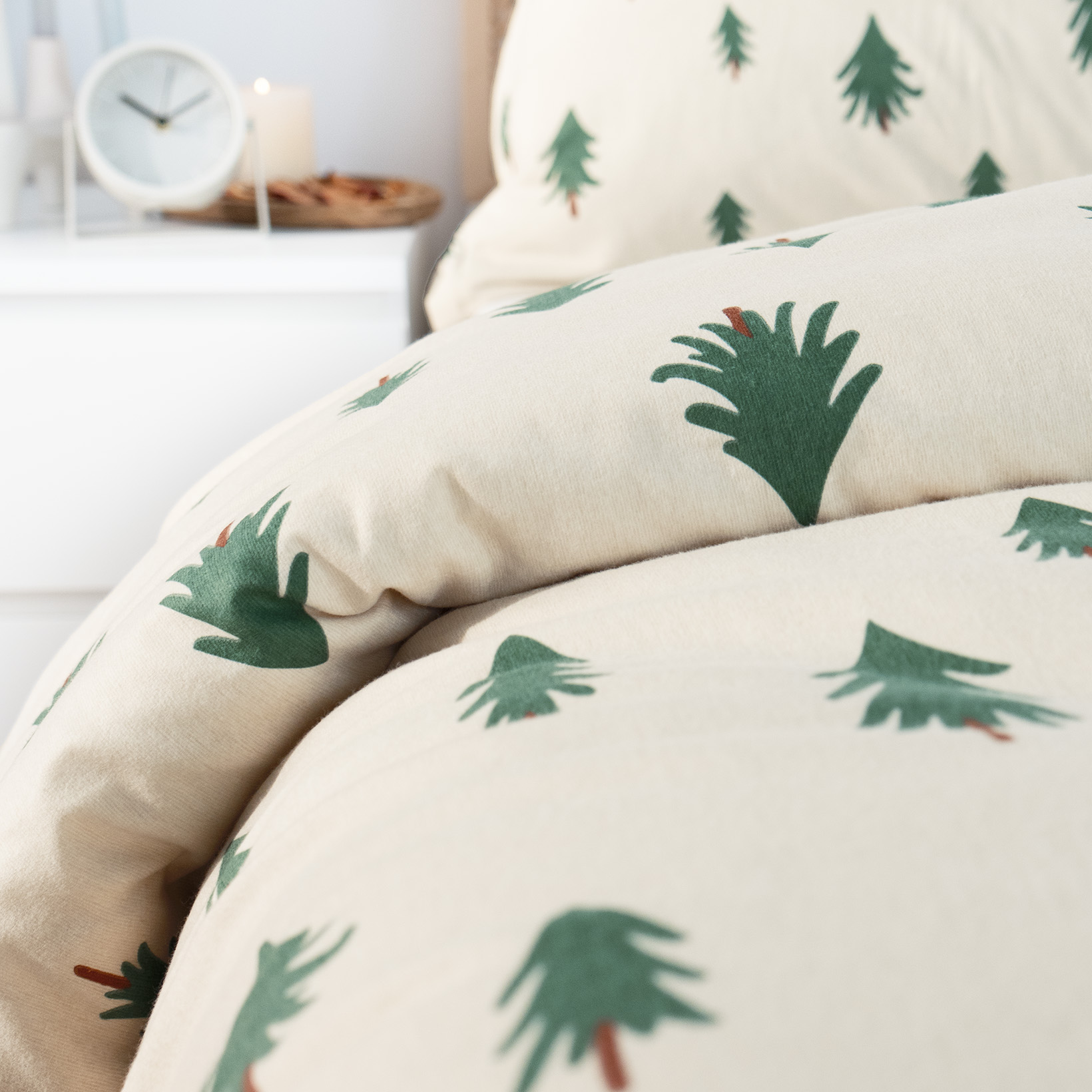 Das Motiv Bäume schafft eine ruhige und ungestörte Weihnachtsatmosphäre in Ihrem Schlafzimmer und sorgt für die bestmögliche Erholung.
