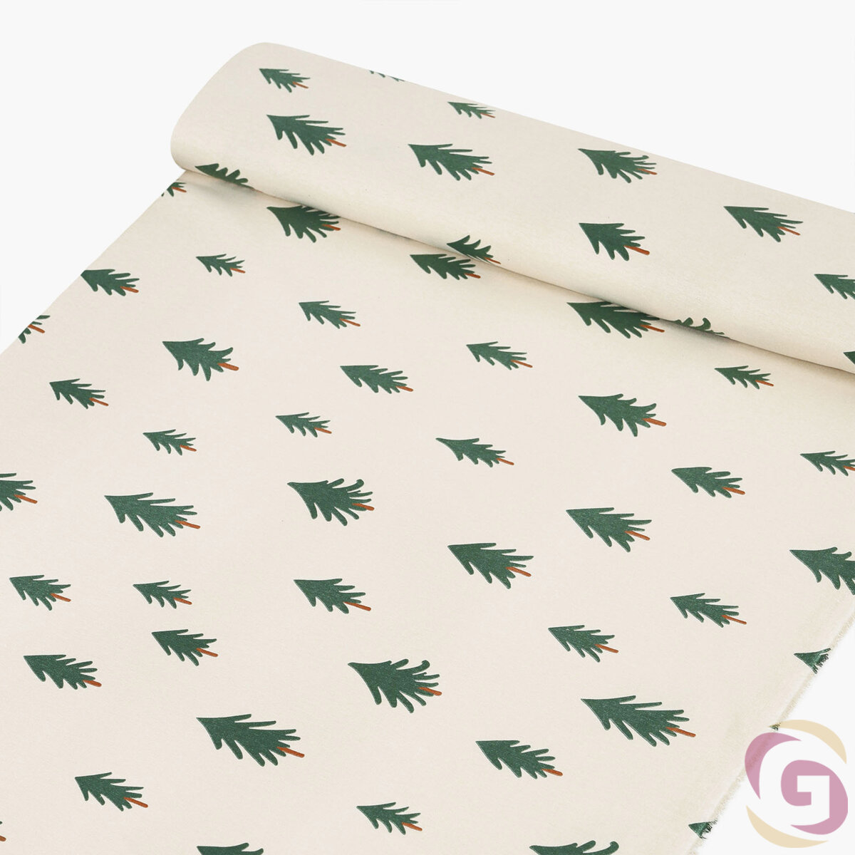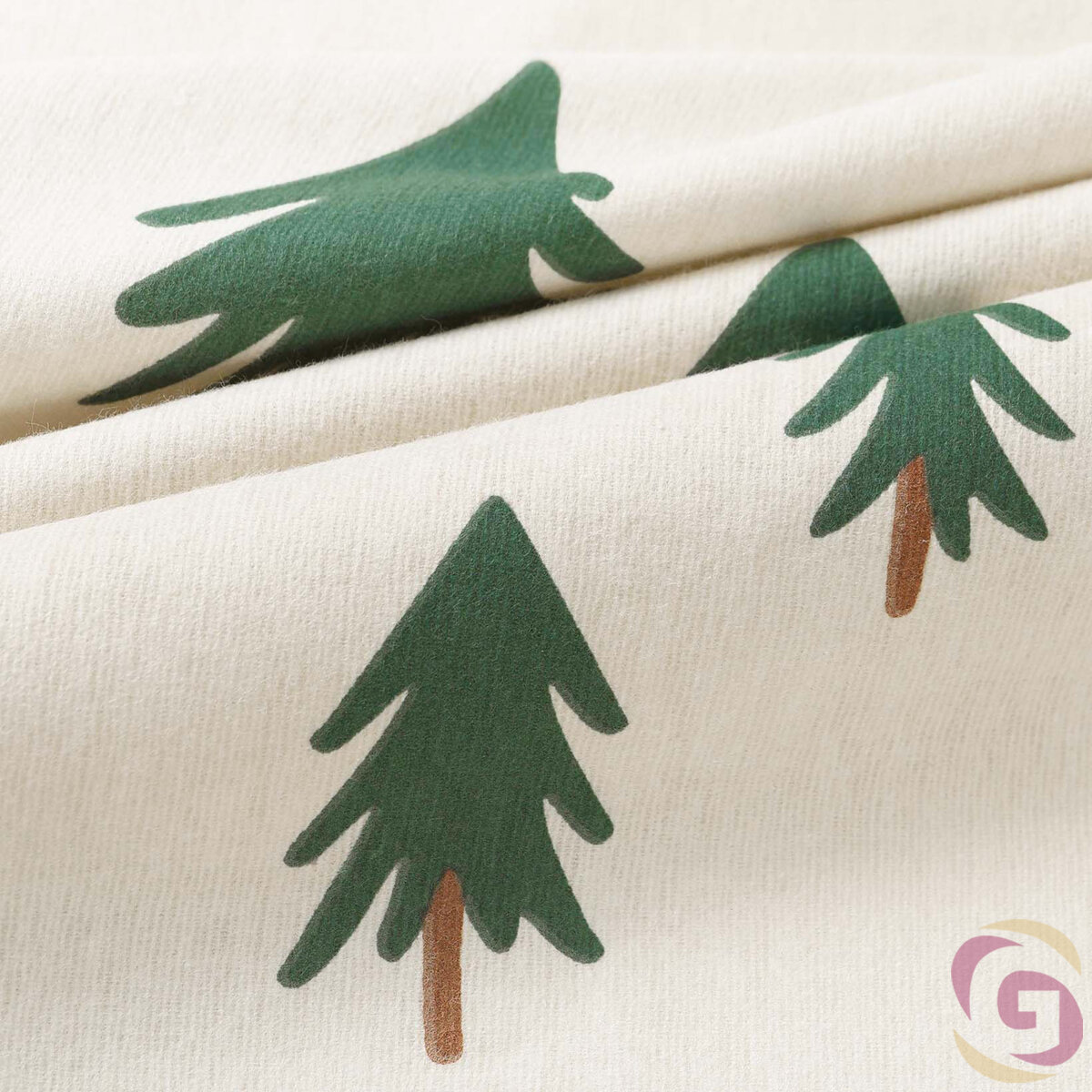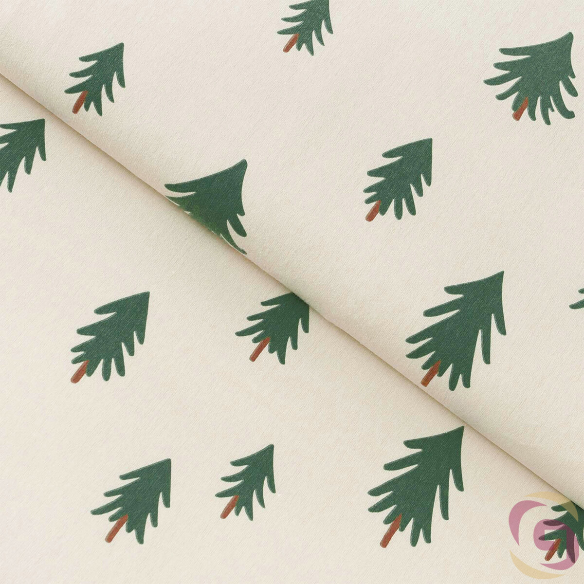 Weihnachtlicher Flanellstoff - Bäumchen auf natur