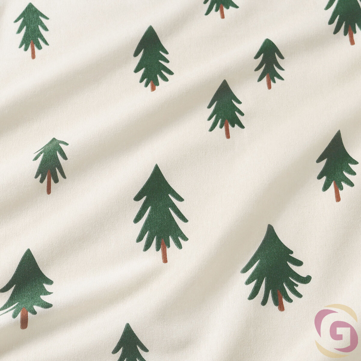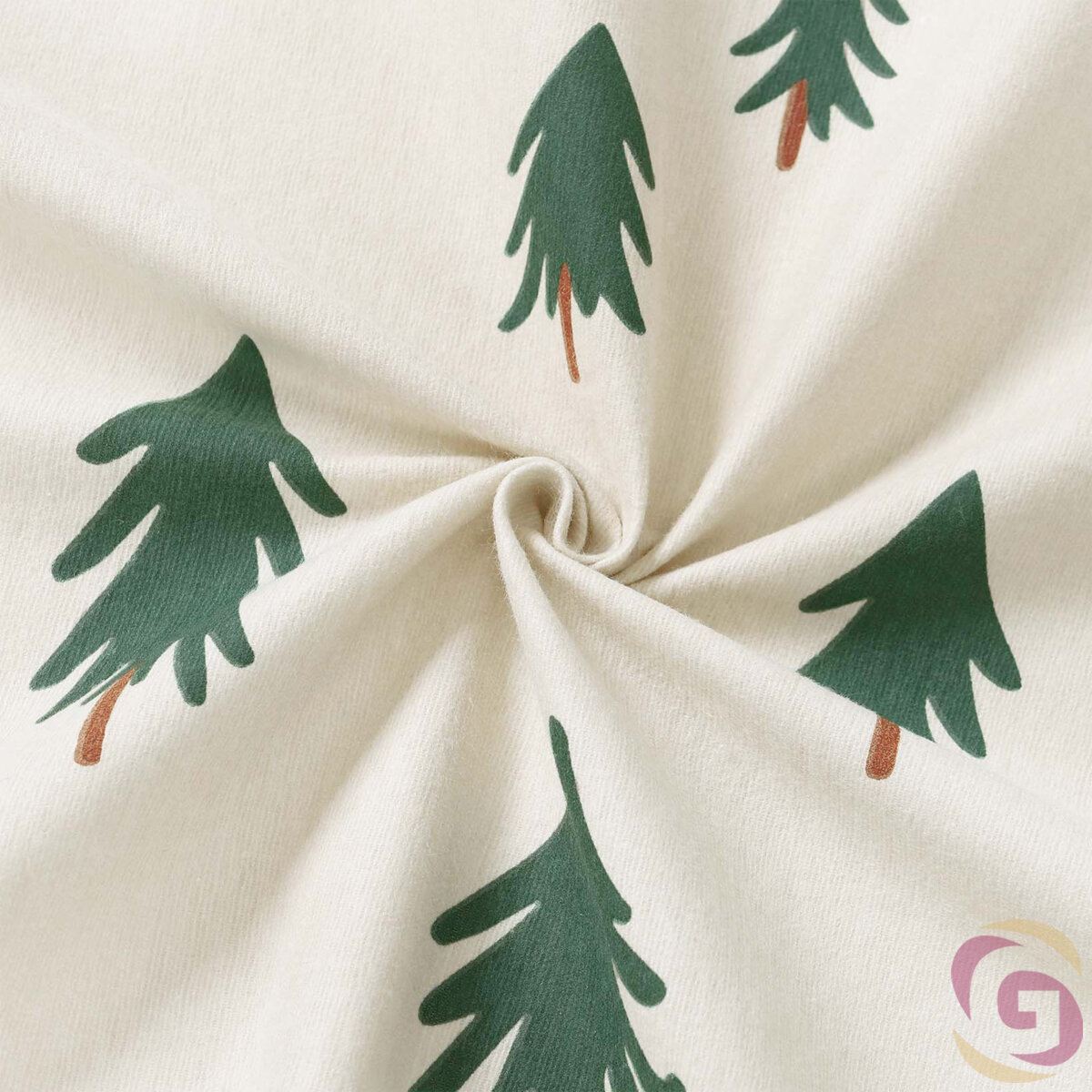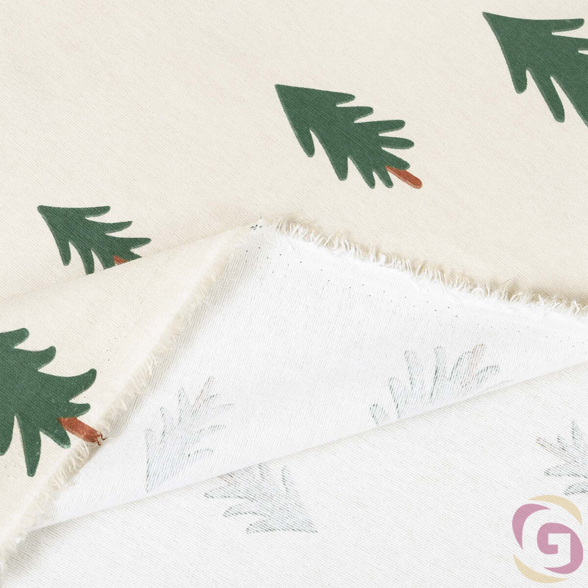 Weihnachtlicher Flanellstoff - Bäumchen auf natur