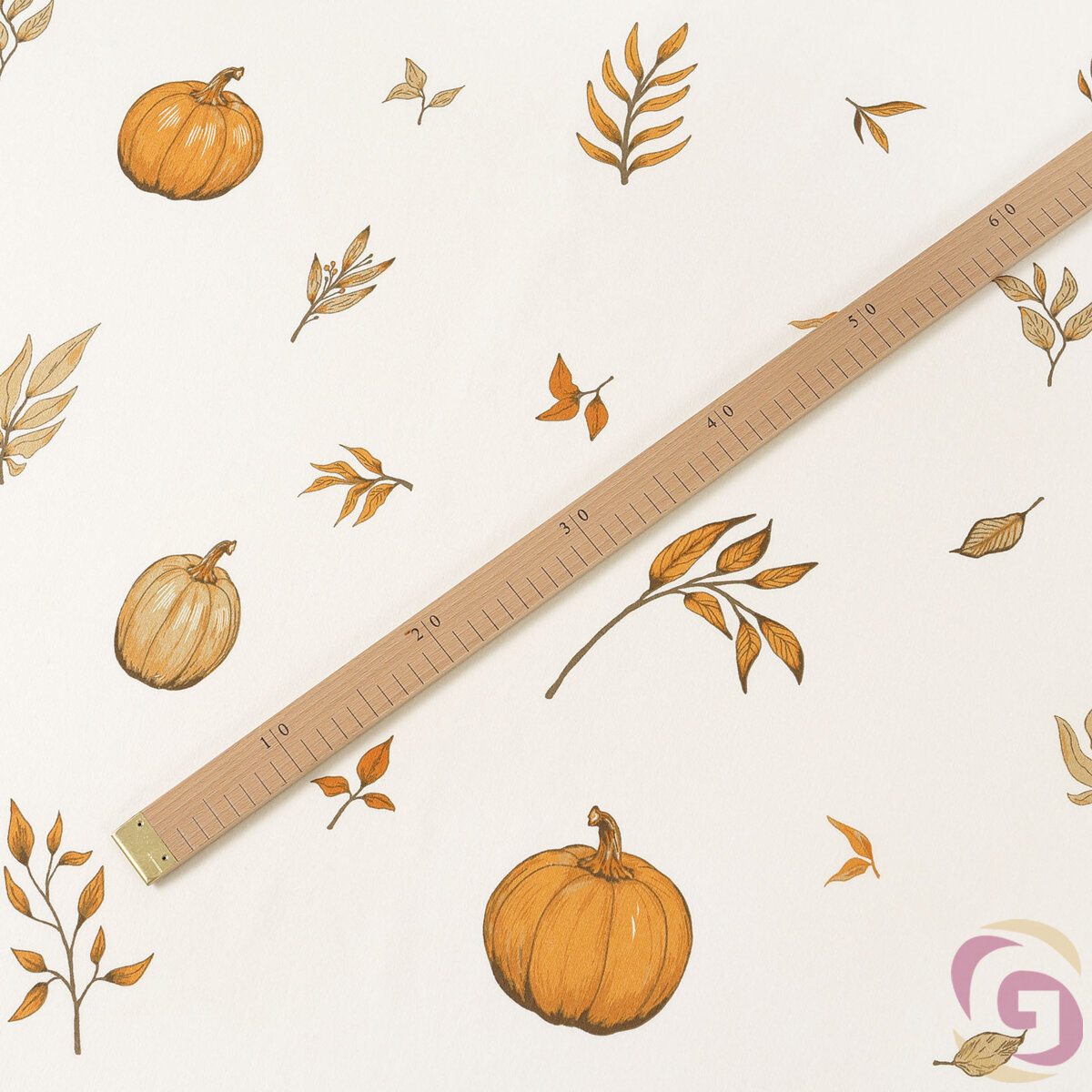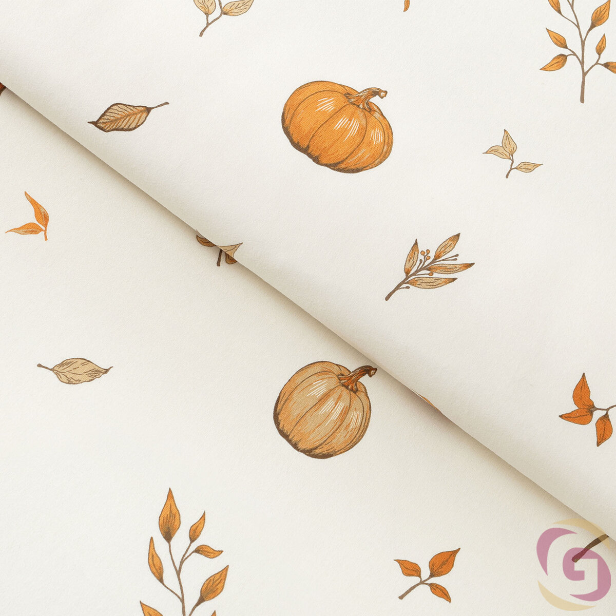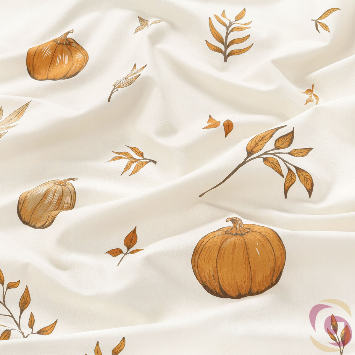 Flanellstoff - Herbstkürbisse und Blätter