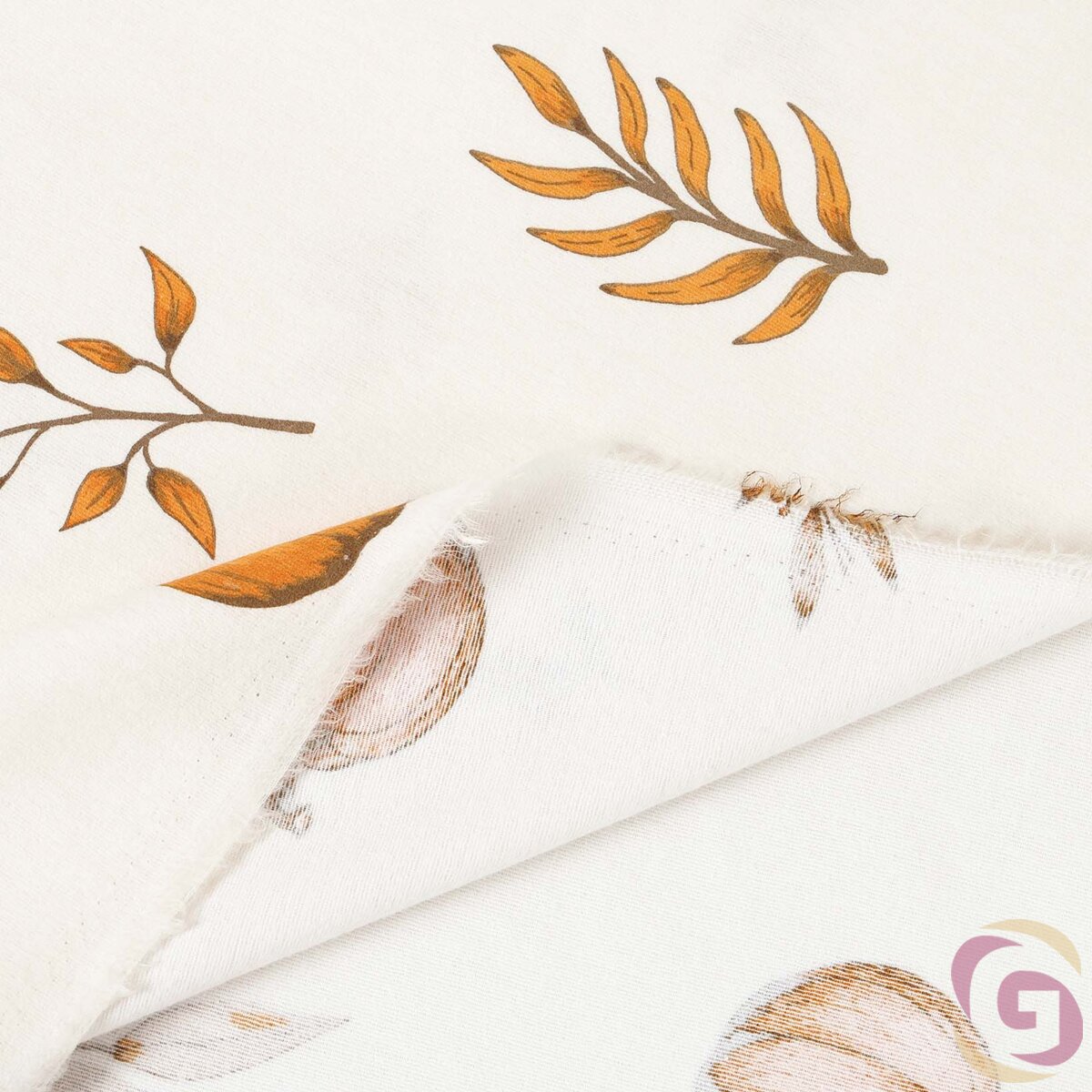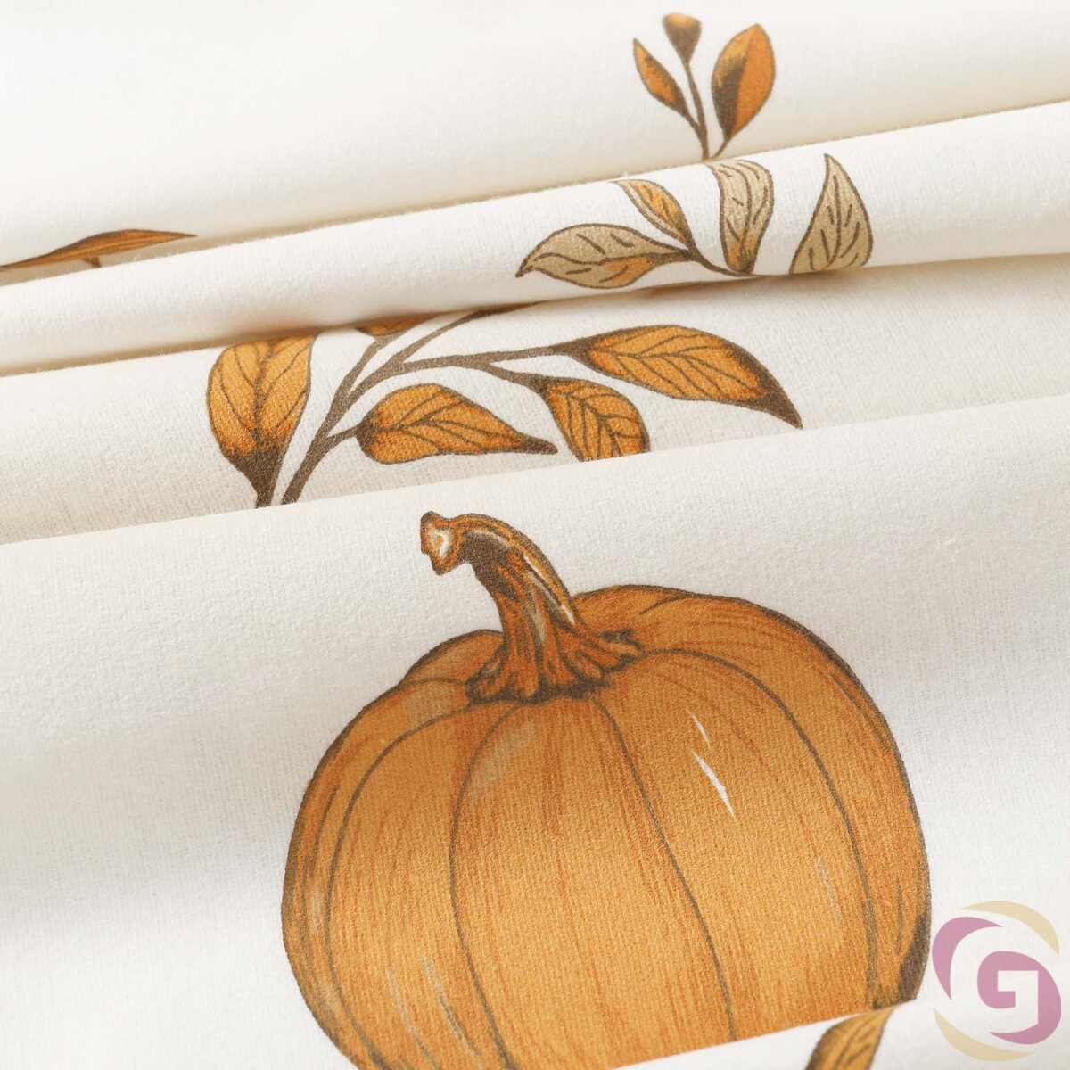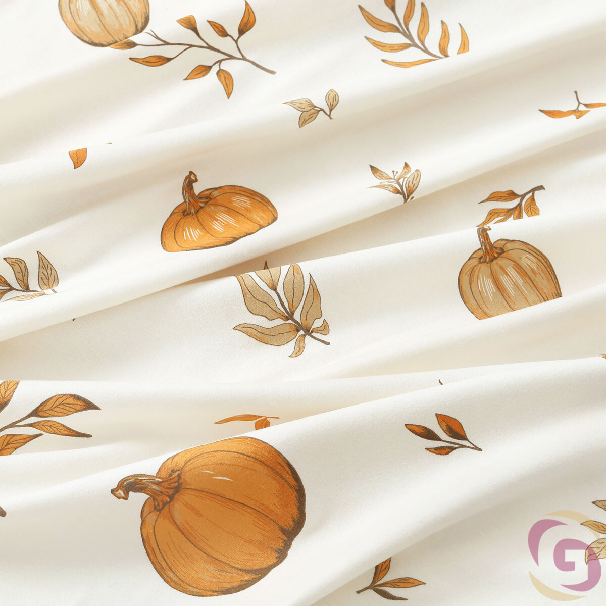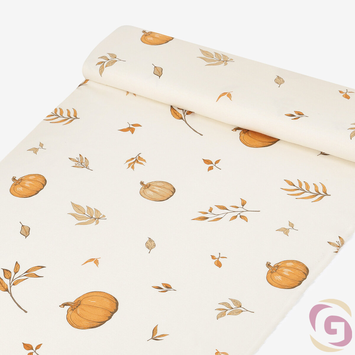 Flanellstoff - Herbstkürbisse und Blätter